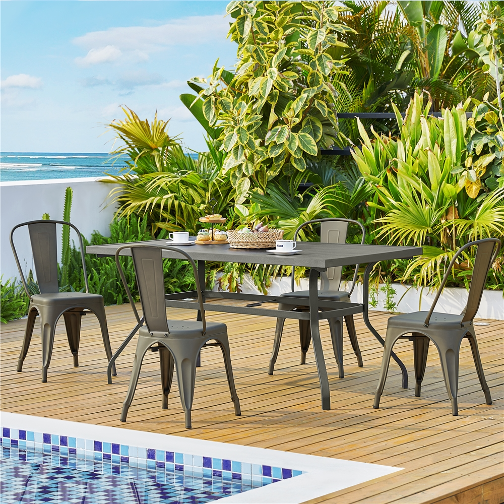Alden Design Industrial Modern Metal Dining Chairs, Set of 4, Gunmetal Gray