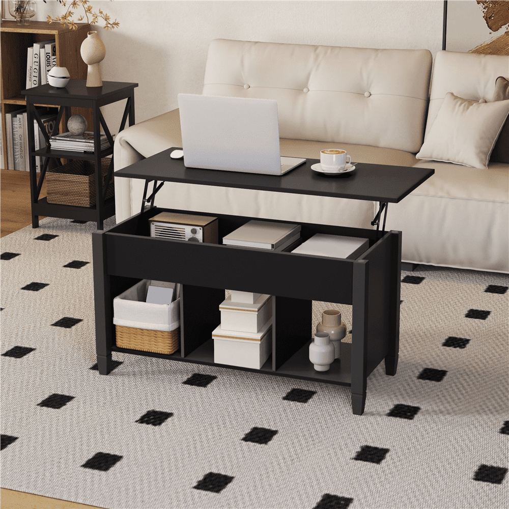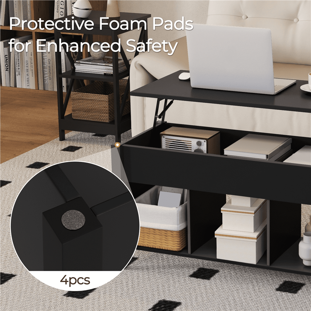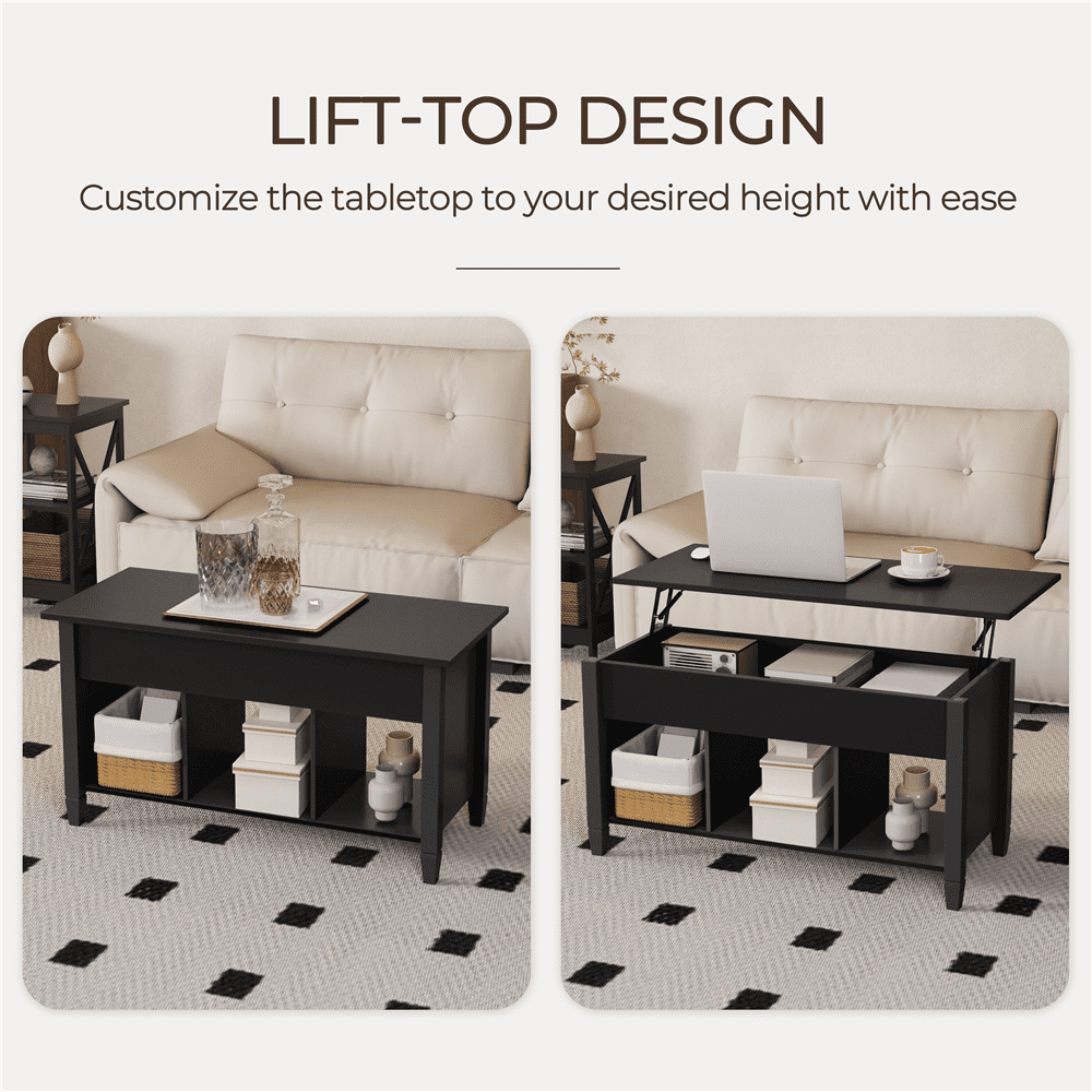 Alden Design Lift Top Coffee Table with Hidden Compartment for Livingroom, Black