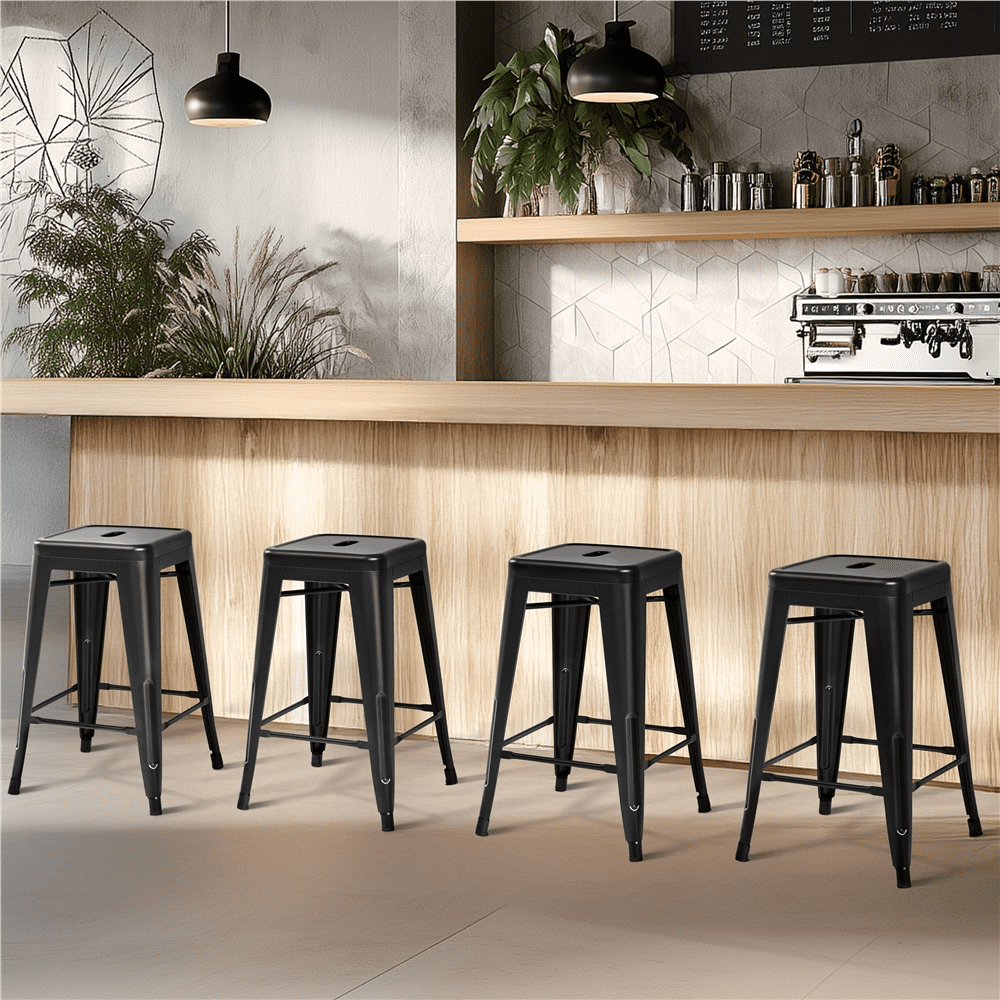 Alden Design Metal 24″ Stackable Backless Counter Height Stools, Set of 4, Black