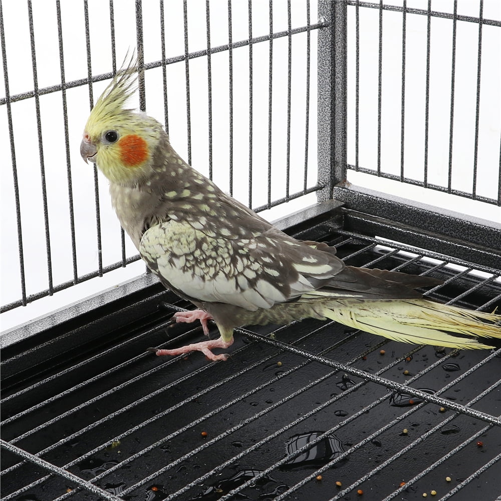 Alden Design Metal 52″ Large Rolling Bird Cage with 3 Perches and 4 Feeders, Black