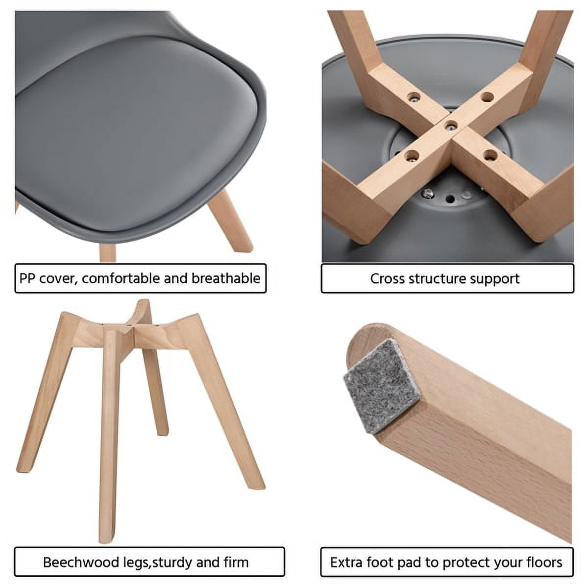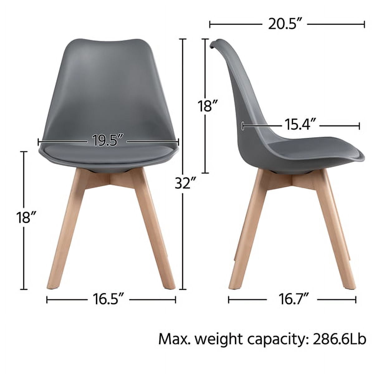Alden Design Mid-Century Modern Padded Dining Chairs, Set of 4 Material: PP, PU, Beech wood, Sponge Overall dimension: 19.3″L x 20.5″W x 32.1″H Cushion size: 17.7″ x 15.4″ Sponge thickness: 0.6″ Gross weight: 48.1 lb Net weight: 42.3 lb Maximum weight capacity: 286.6 lb Easy assembly