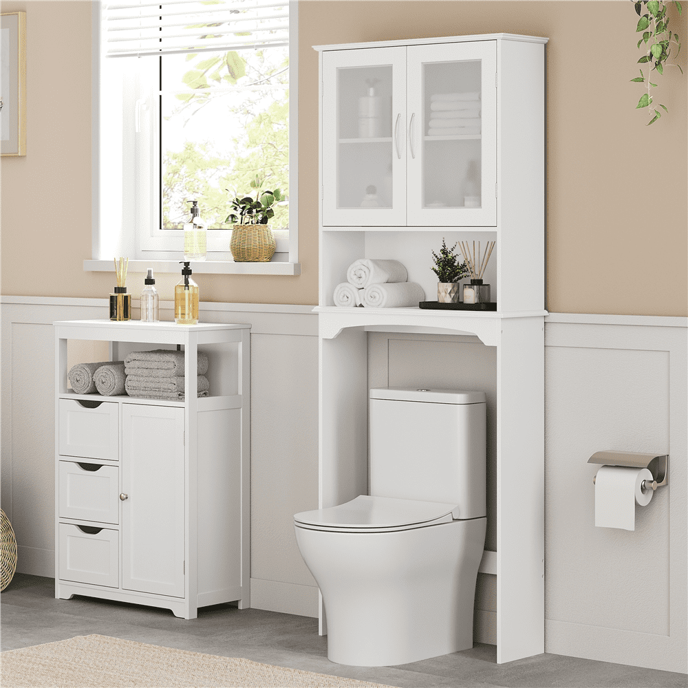 Alden Design Modern Free-Standing over-the-Toilet Storage Cabinet, White