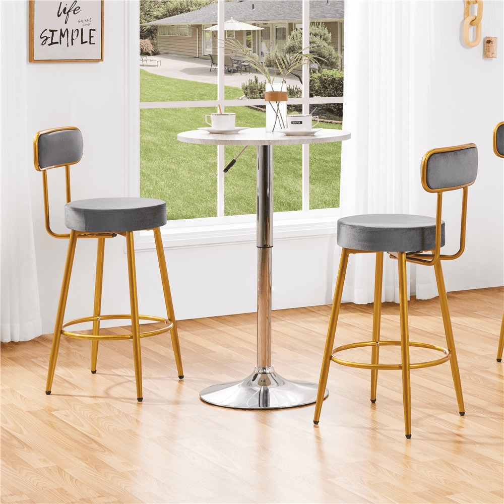 This pack of 2 counter-height stools will flawlessly decorate your dining room, adding a modern touch and luxury feeling to the home bar, kitchen, restaurant, café, and so on. More, the crafted materials and high-end appearance allow these modern stools to be an ideal option for socializing with your guests or friends when they come over to drinks or dinner. Each stool can hold up to 300 lb and features an ergonomic backrest design, premium velvet fabric, a foam-padded seat, and a circular footrest that enhances both style and comfort. Only simple installation is required.
