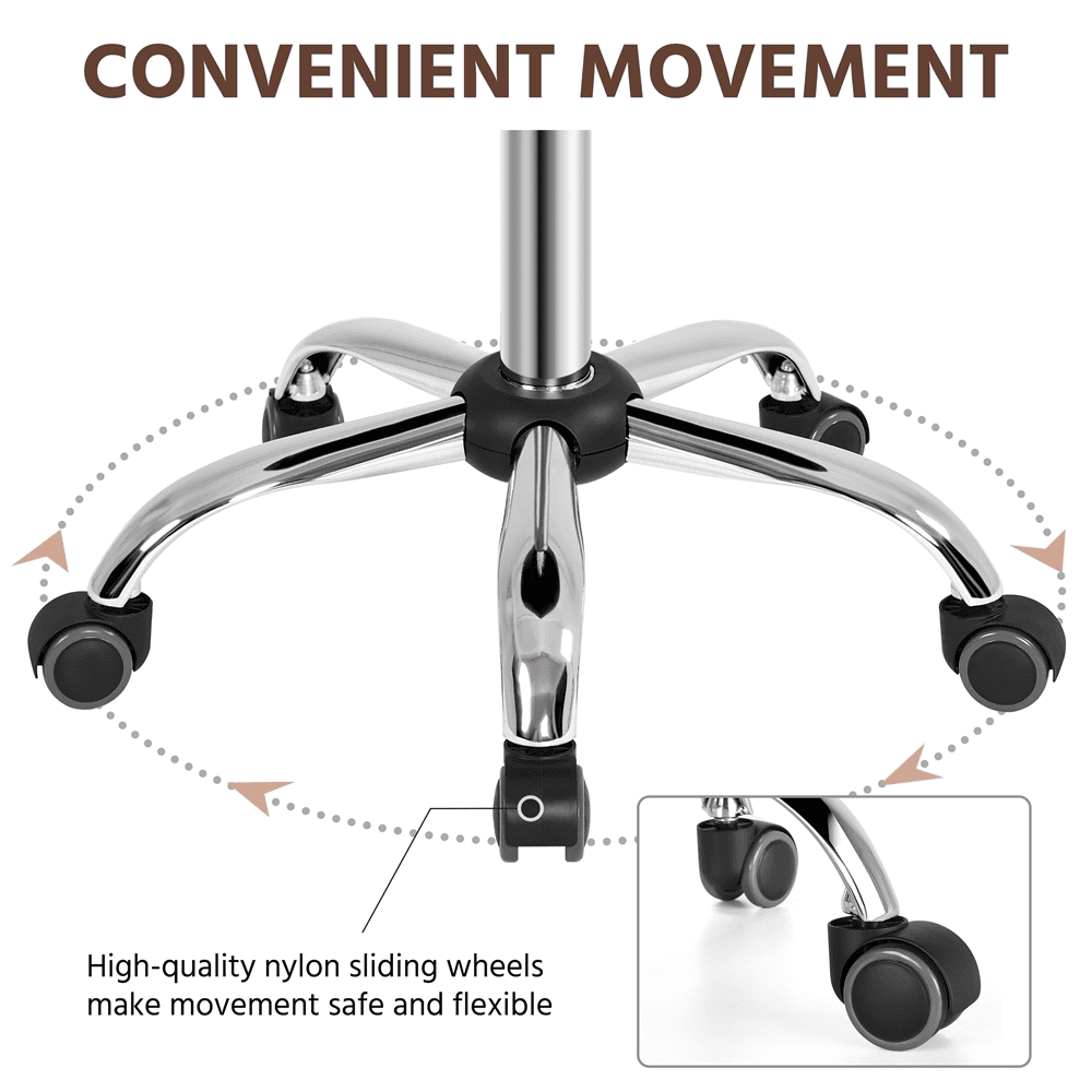 Looking for a counter-height stool for your kitchen? Or want to refurnish your bar? You must not miss this glossy salon stool. With a thick foam padded seat with a premium PU leather covering, this stool is super soft and comfortable to sit on for a long time. The sturdy legs are made of chrome-plated steel, ensuring excellent anti-oxidation and weight capacity. 5 360° swivel castors are provided for smooth and quiet movement. This high-quality and tasteful adjustable bar stool is designed to meet your various needs.