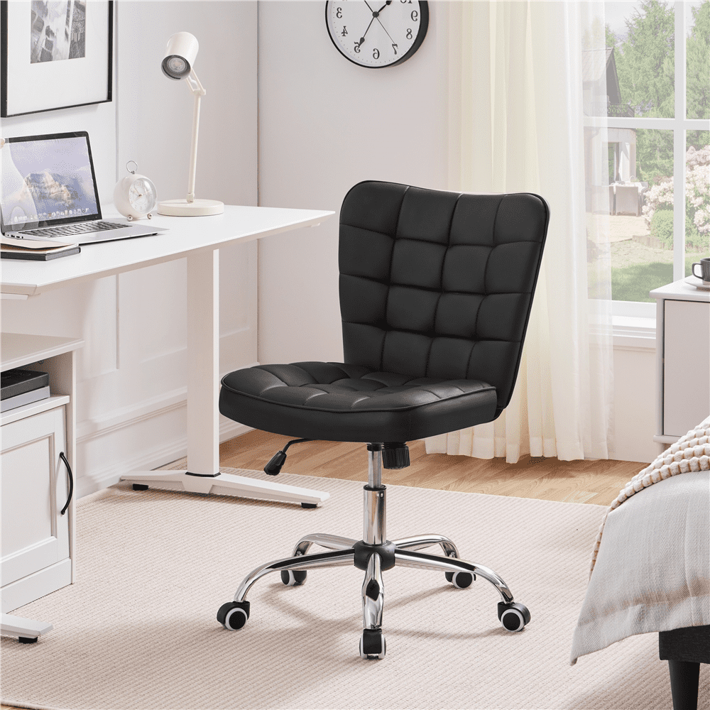 Alden Design Modern Tufted Faux Leather Home Office Armless Desk Chair, Black