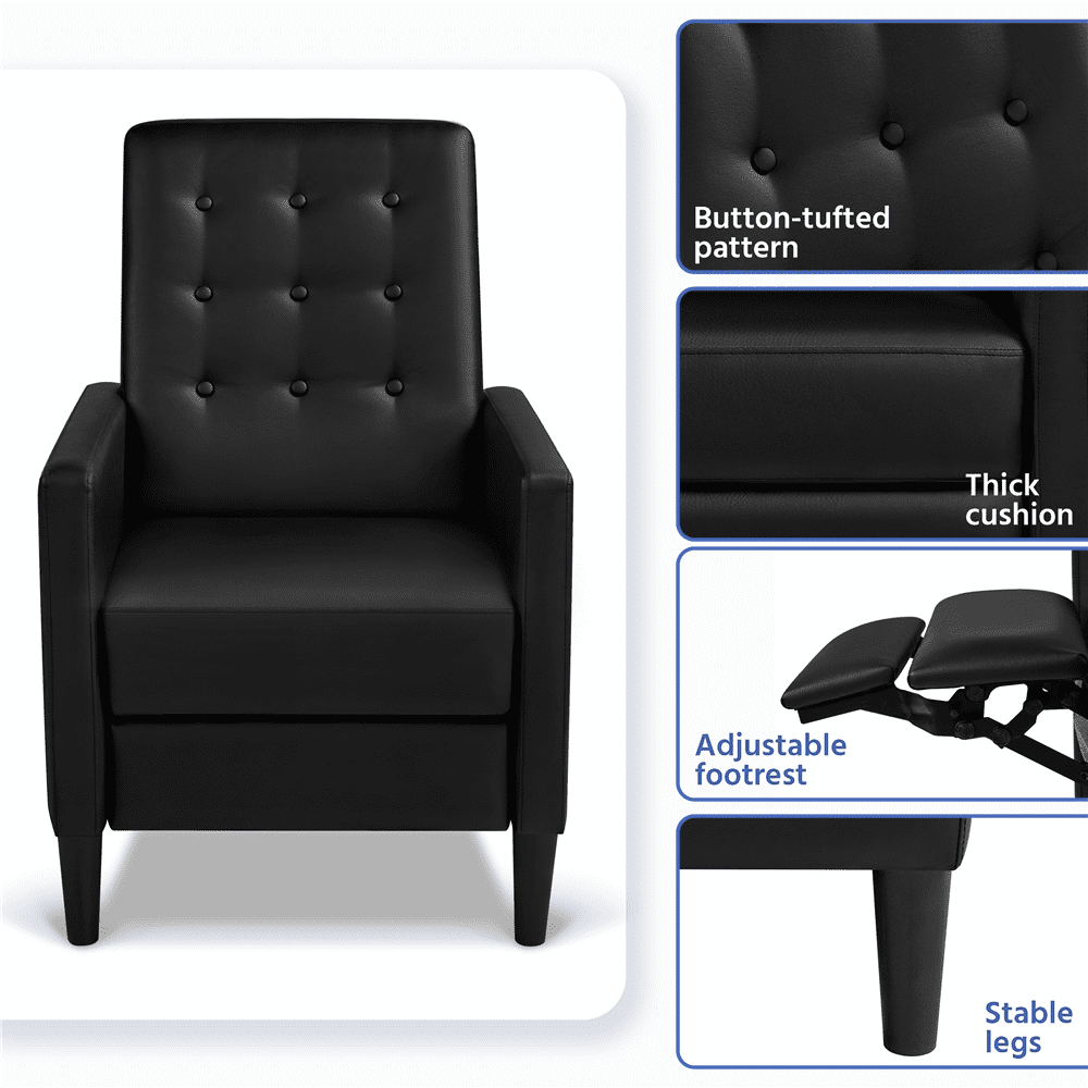 Alden Design Modern Tufted Faux Leather Recliner with Footrest for Living Room, Black