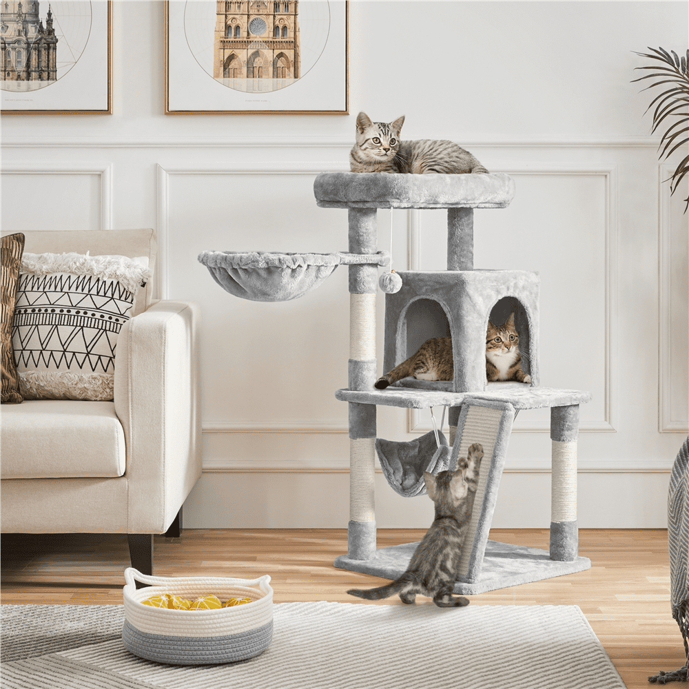 Alden Design Multi-level Small Cat Tree Tower with Condo, Light Gray
