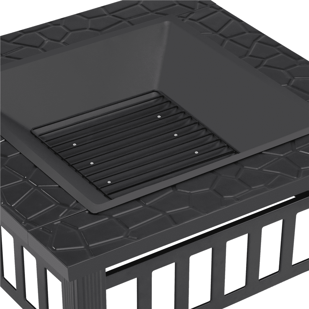 This outdoor fire pit is ideal for cold nights, providing cozy warmth, light and a beautiful, captivating, comfortable atmosphere. This premium fire pit is built in square shape for stability. The wide edge around the fire bowl provides ample space for holding plates, sauces, brushes and other barbecue supplies, allowing convenient access during cooking. This garden square fire pit comes with a mesh lid to prevent burning embers from blowing out and a poker for stoking fire and to help remove the mesh lid. Our square brazier is crafted out of high quality metal mesh and frame. Heat resistance paint coating the fire pit is excellent in rust and heat resistance offering a long service life. Also suitable for burning logs or charcoal, this square fire pit is available in matt chic color and stamped with decorative rock pattern certain to be an eye-catching piece in your yard.
