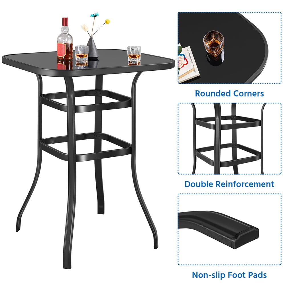 Alden Design Outdoor Bistro Table with Tempered Tabletop, Black