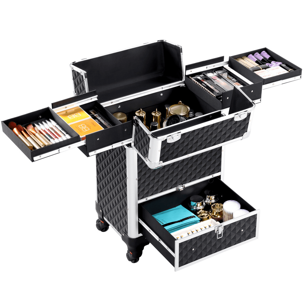 Alden Design Professional Makeup Case, 4 Retractable Trays & 1 Drawer, Black