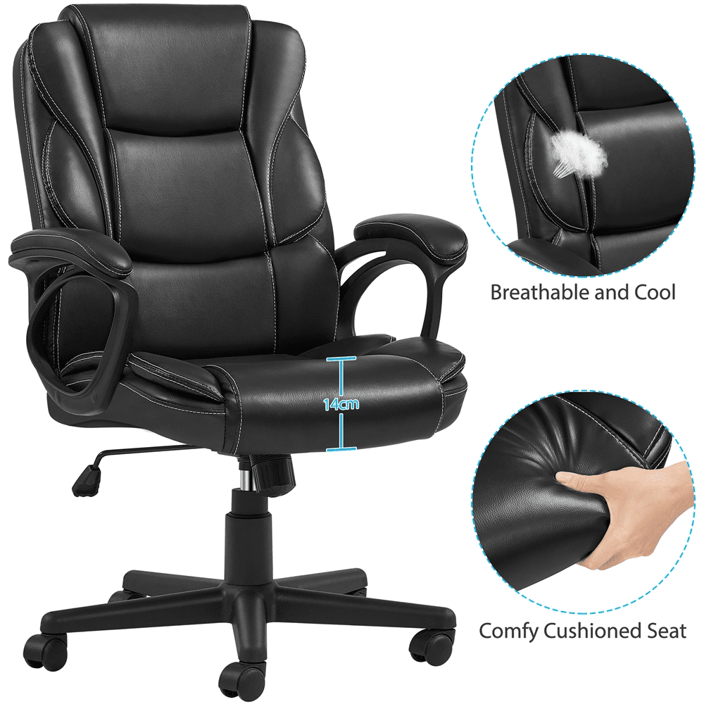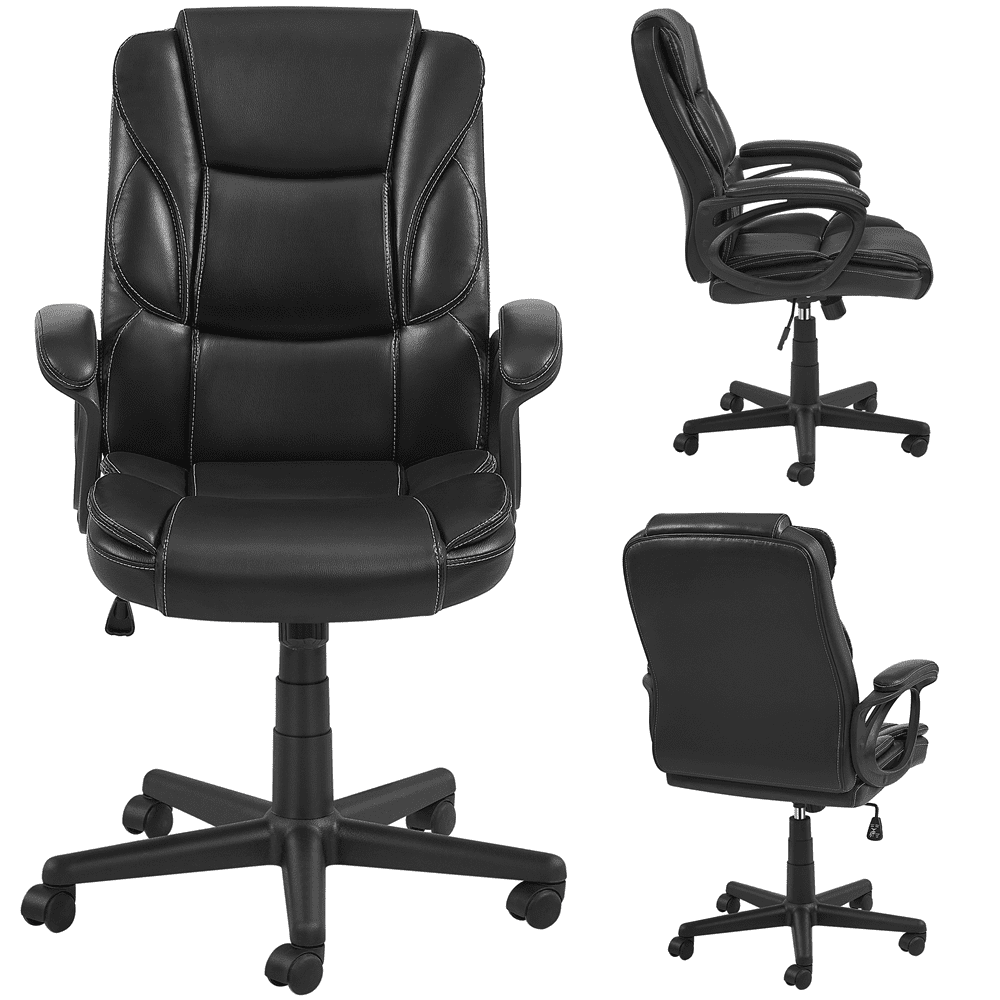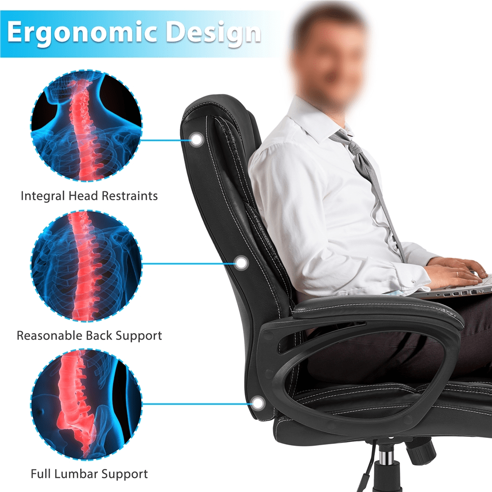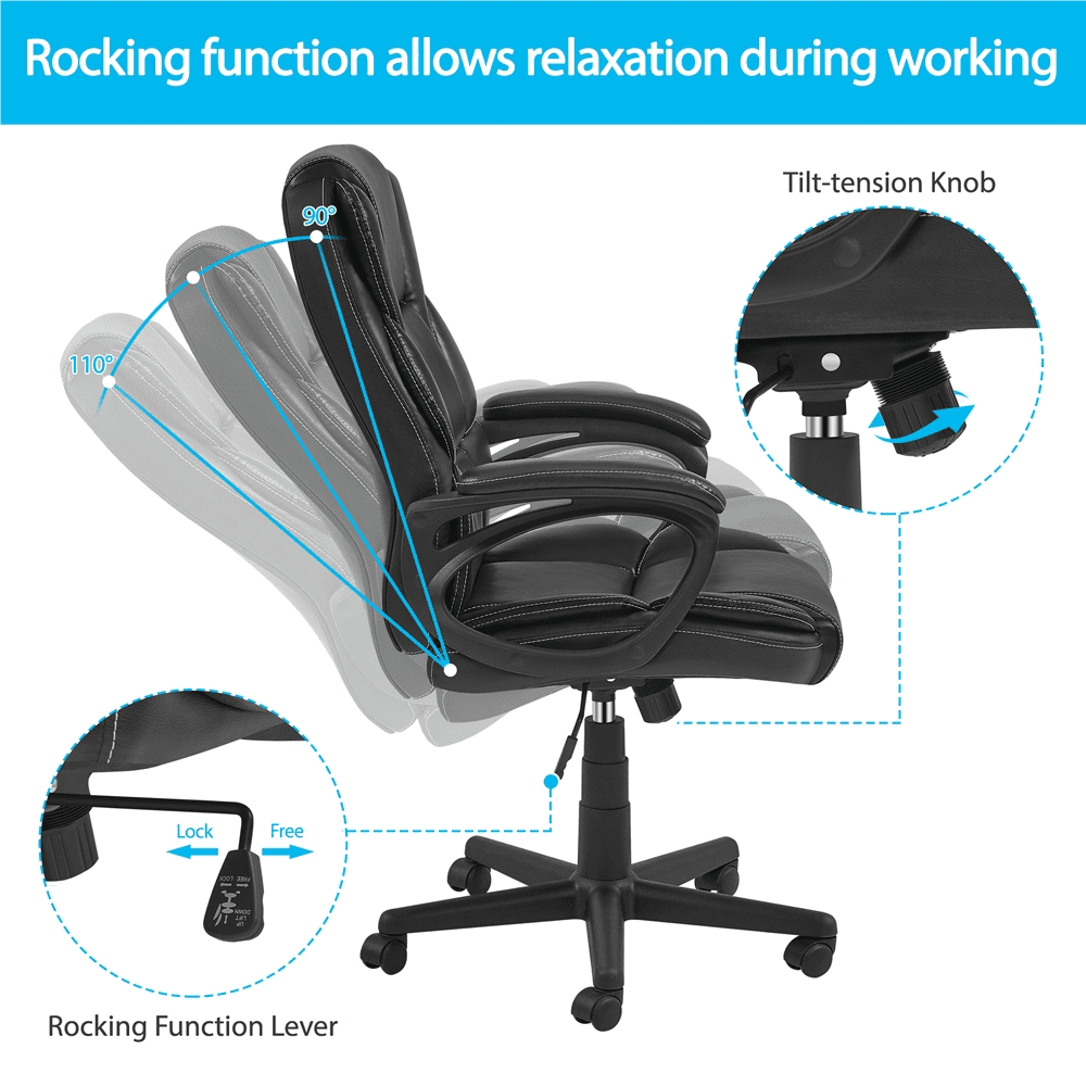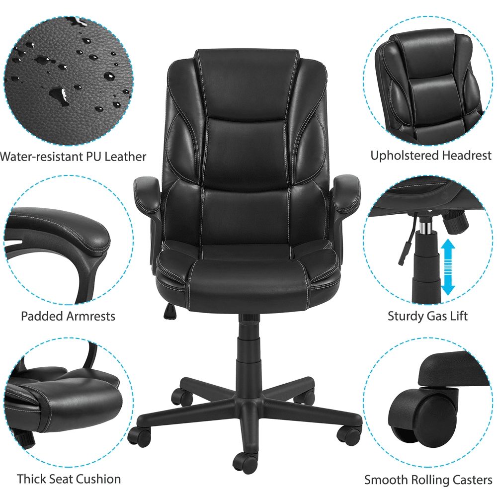 Alden Design PU Leather Upholstered Office Chair with High Back, Black