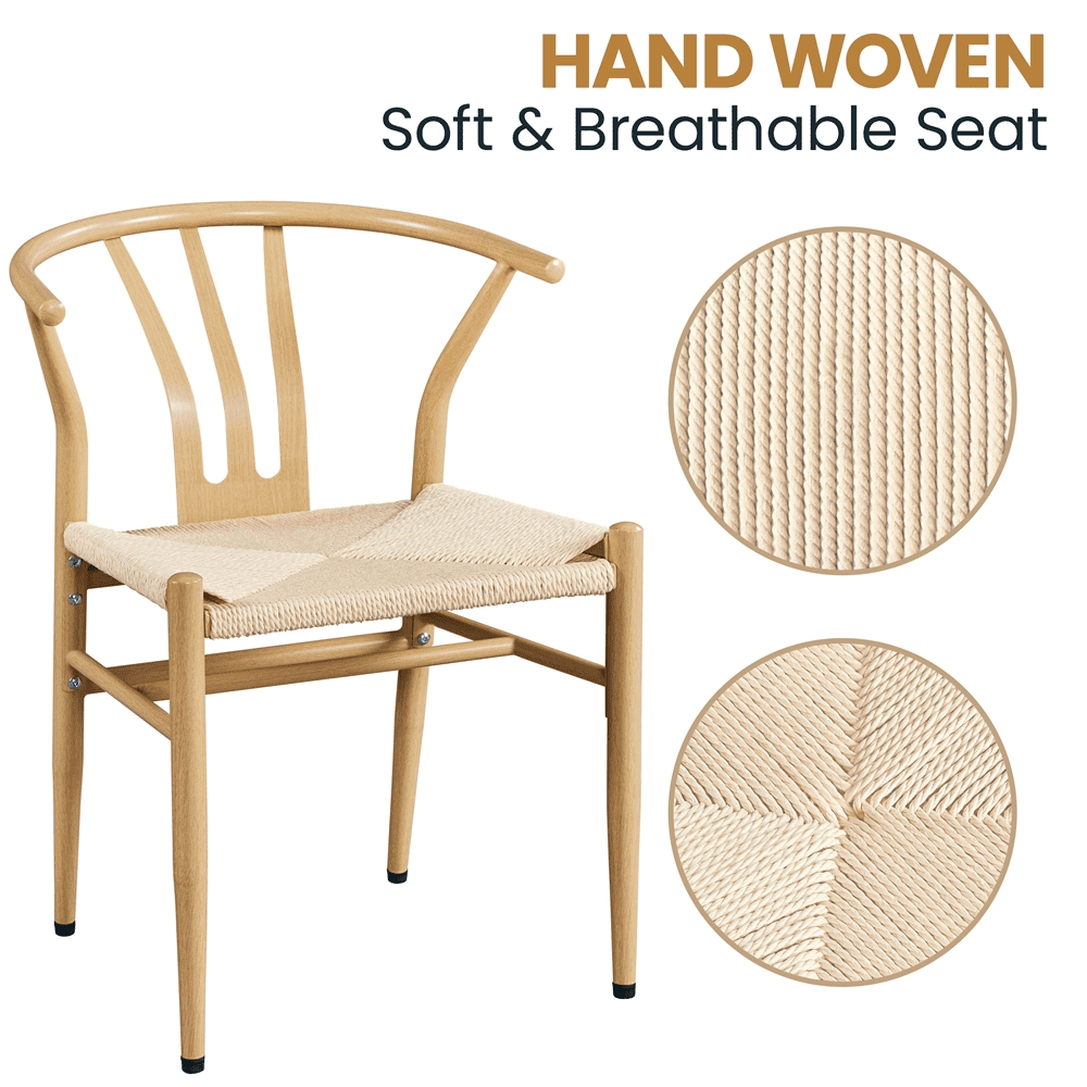 Alden Design Set of 4 Mid-Century Weave Dining Chairs with Solid Metal Frame, Wood