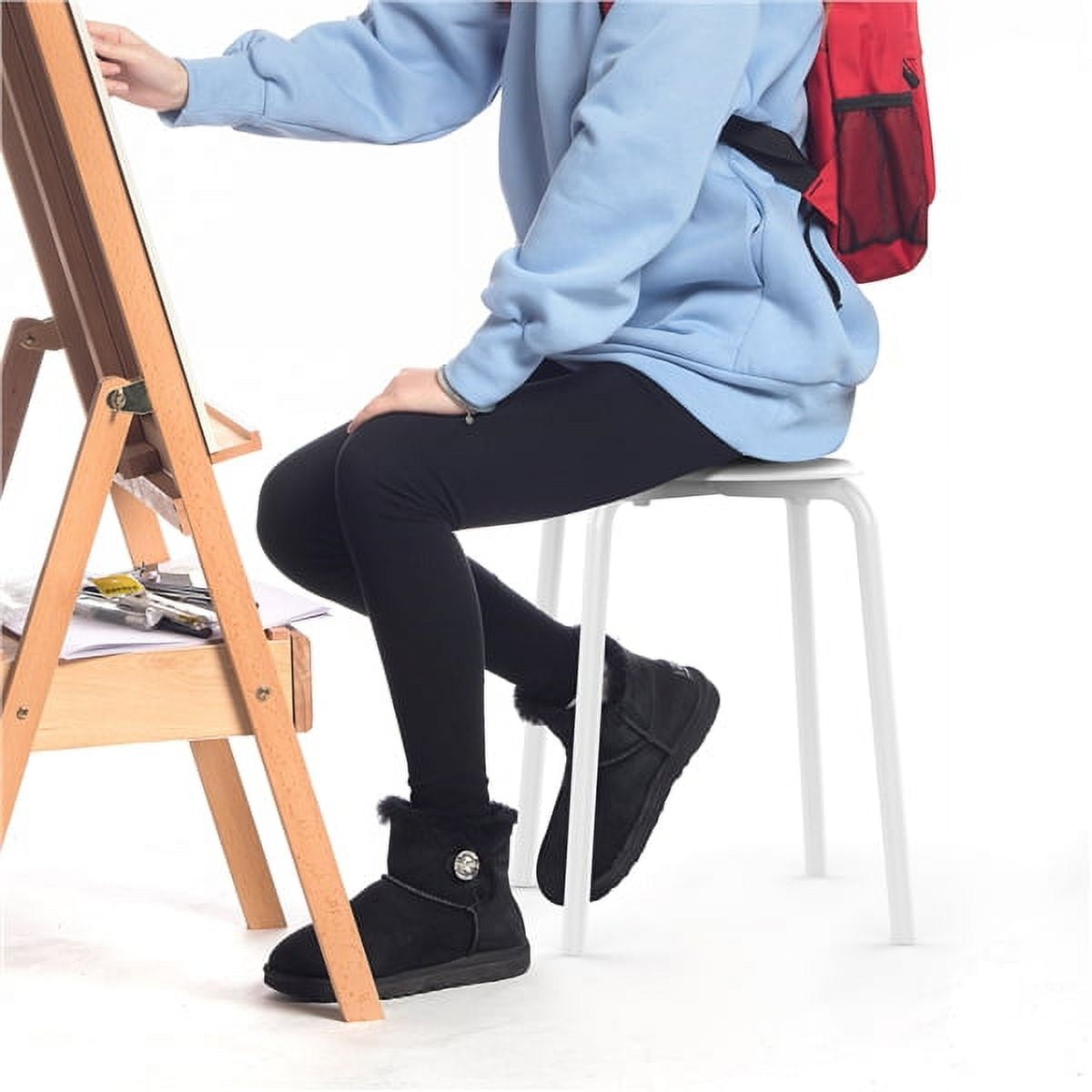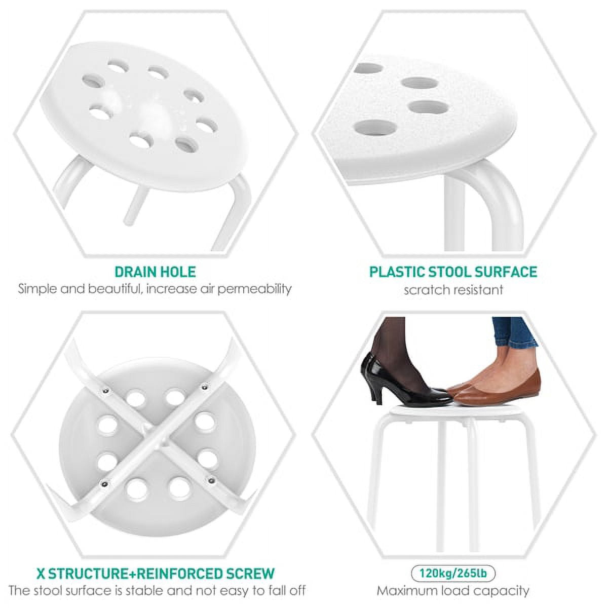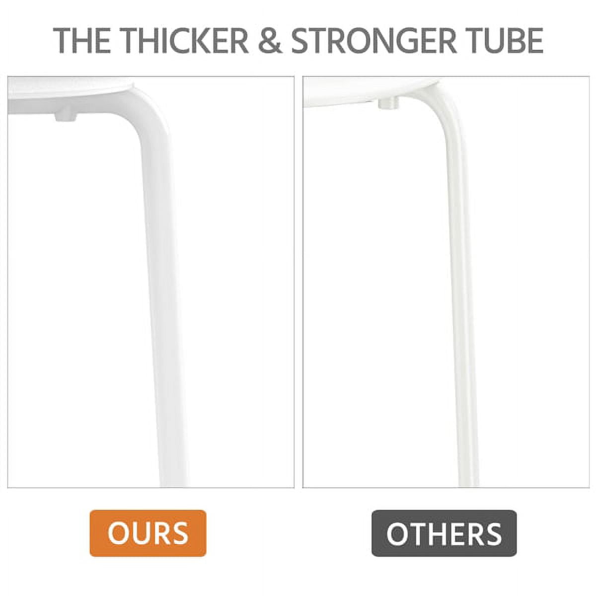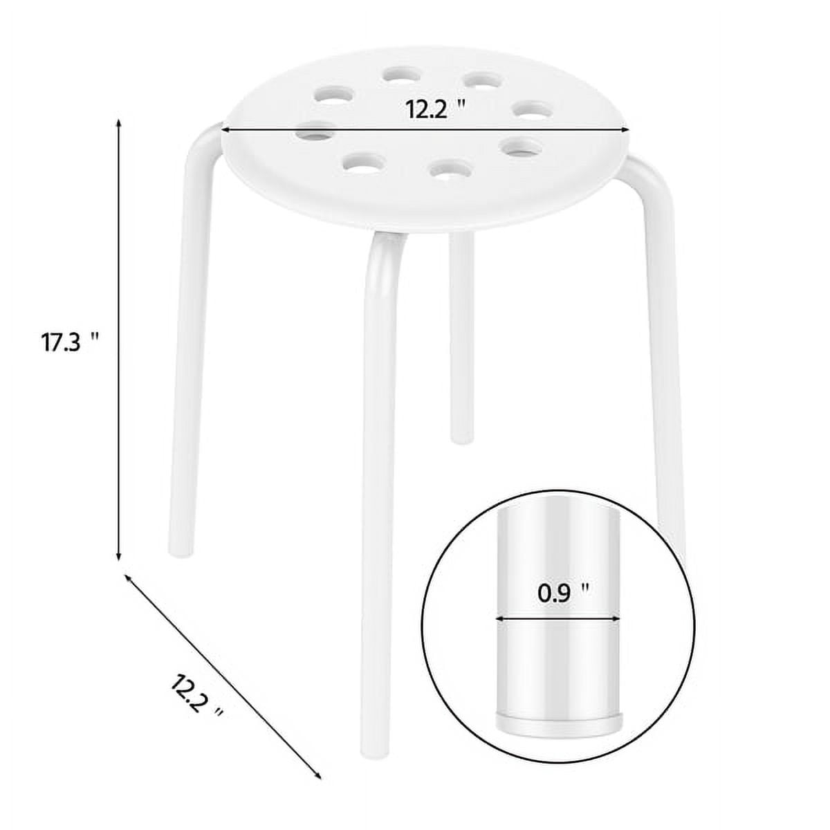 Space Saver: Stackable design makes it convenient to store when not in use Reinforced Materials: Made of thickened reinforced materials with excellent weight capacity up to 265 lb Practical Design: Simple round seat designed with 8 round holes, securing both tasteful appearance and high breathability Detail-oriented Features: Protective leg caps for floor protection and meanwhile avoiding internal oxidation Wide Applications: Can be used in classroom, studio, cafe, library, study, dorm, office and more Lightweight Construction: Easy to carry and move around Standard Size: Compatible with all standard tables and desks Classic Color: Seat and well-furnished metal frame going well with all home decor Easy Maintenance: Dirt-resistant design with all parts cleaned with damp cloth Longer Lifespan: Durable seat fixed to the solid metal frame with four extra-long bolts, more stable than the competition