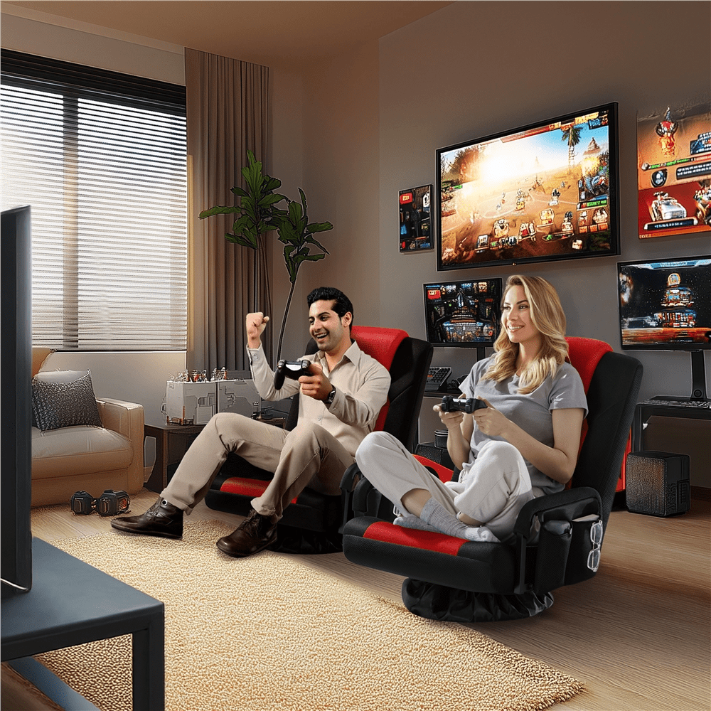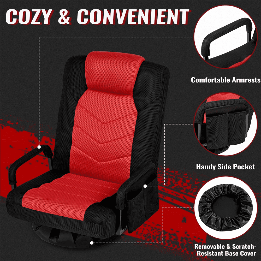 Alden Design Swivel Floor Gaming Chair with Adjustable Backrest, Black/Red