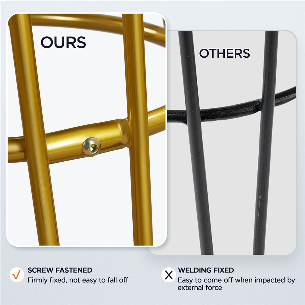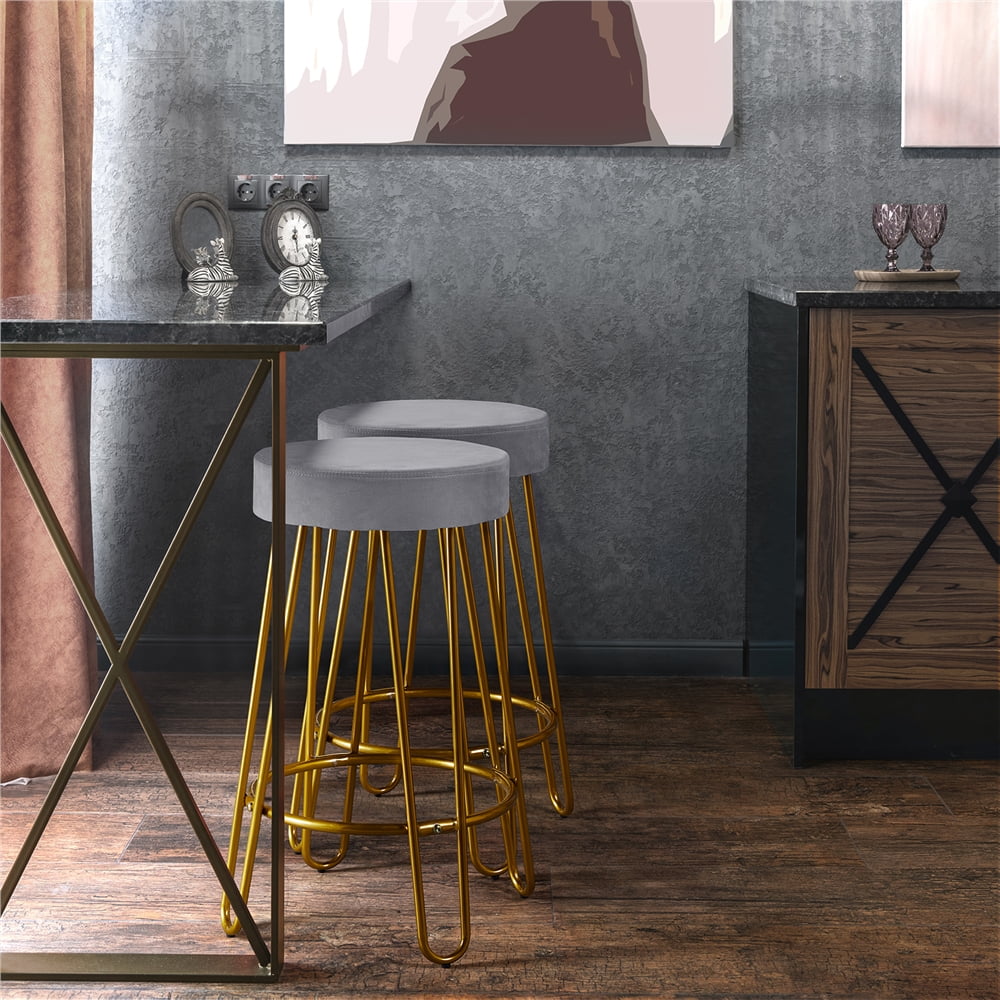 This set of 2 counter stools is made of high quality and sturdy materials, guaranteeing it will last a long time. Both the velvet upholstered colors and the faux leather colors have a soft feel to them. The rounded seats are padded with thick foam, providing strong support and keeping you comfortable for long periods seated. The sturdy metal legs have a glam style charm to them and will elevate the look of any room. These stools are perfect for any dining room, kitchen, den, living room, restaurant, etc.