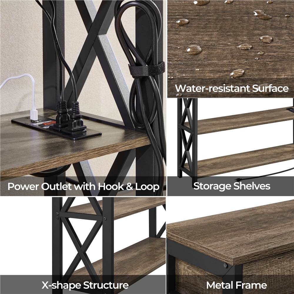 Alden Design Vintage Wooden Console Table with Power Outlet for Entryway, Taupe Wood