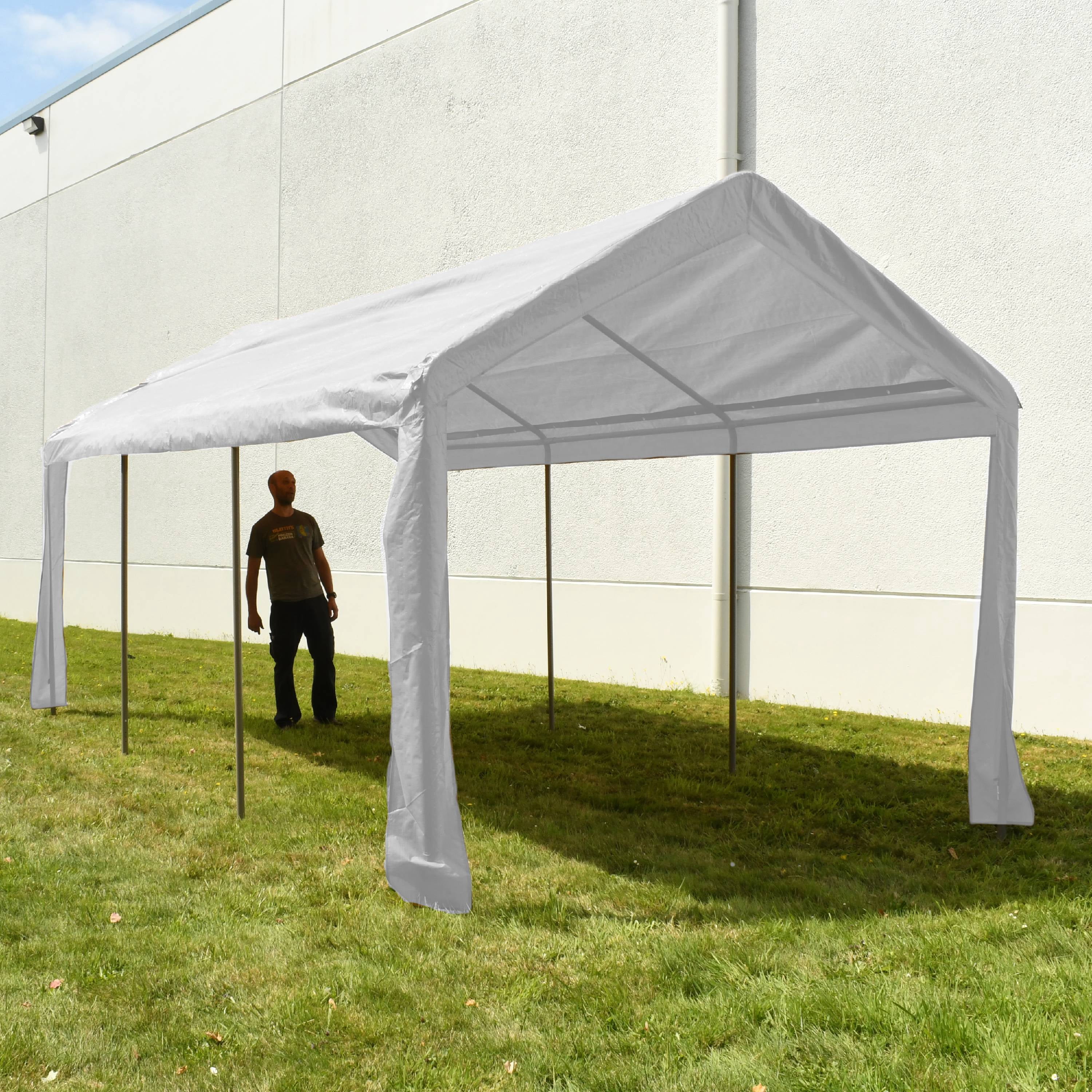 ALEKO 10′ x 20′ Steel Frame with PVC Removable Walls Canopy Carport Tent, Heavy Duty, White Color