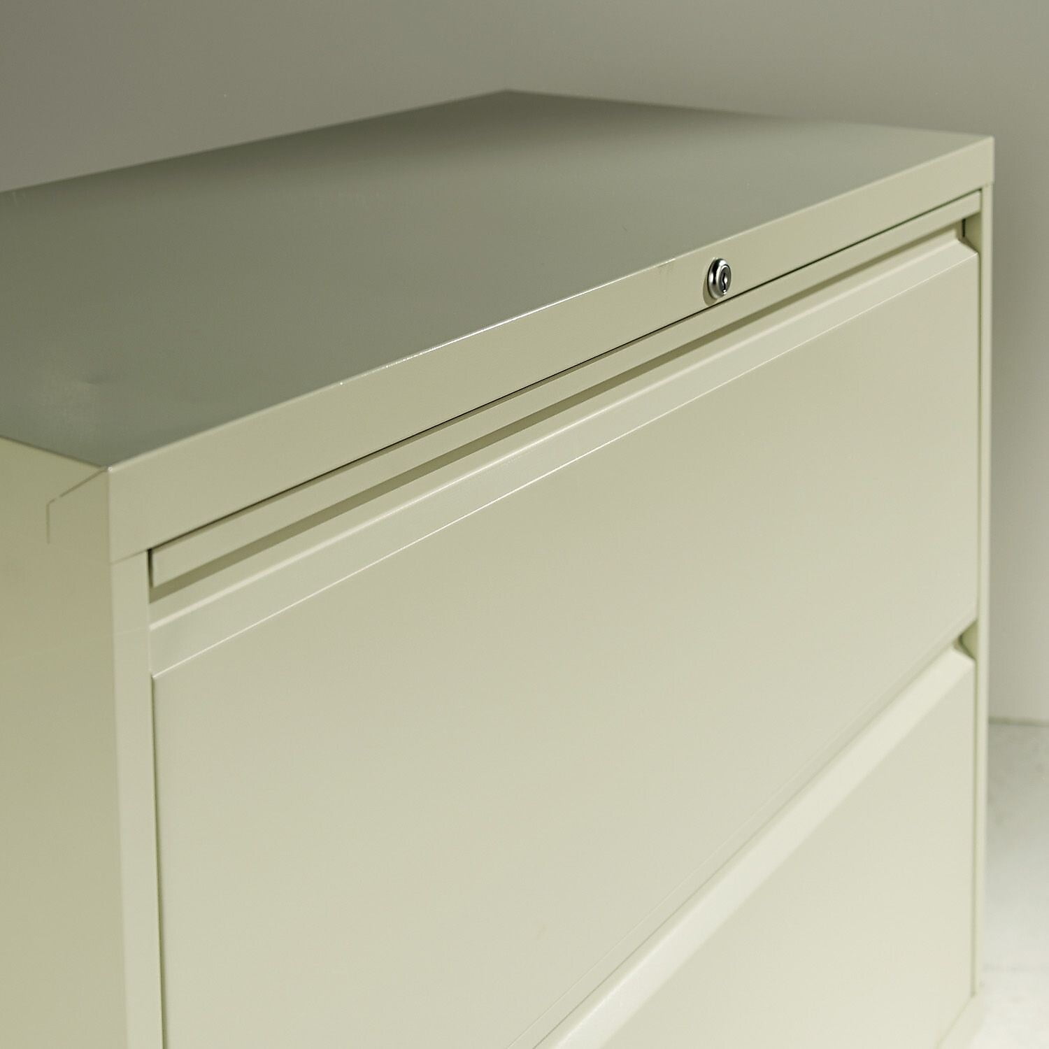 Alera Two-drawer lateral file cabinet in light gray color measures 28 3/8″ x 36″ x 19 1/4″ and features anti-tipping interlock system that allows only one drawer to open at a time. Alera Two-drawer lateral file cabinet in light gray color features durable powder coated finish that helps to prevent scratches. Cabinet measuring 28 3/8″ x 36″ x 19 1/4″ comes with 4 adjustable leveling glides, single key core removable lock. • Drawers with side-to-side hang rails to accommodate letter/legal hanging files. • Full drawer extension on steel ball bearing telescoping slide suspension. • Stylish full-width radius edge recessed pulls. • Anti-tipping interlock system allows only one drawer to open at a time. • Single key core removable lock with two keys. • Four adjustable leveling glides. • Durable powder coated finish helps prevent scratches. • Caster/glide/wheel type: Adjustable leveling glides. • Anti-tipping interlock system allows only one drawer to open at a time, single key core removable lock with two keys. • Durable powder-coated finish helps prevent scratches. • Sold as 1 Each.