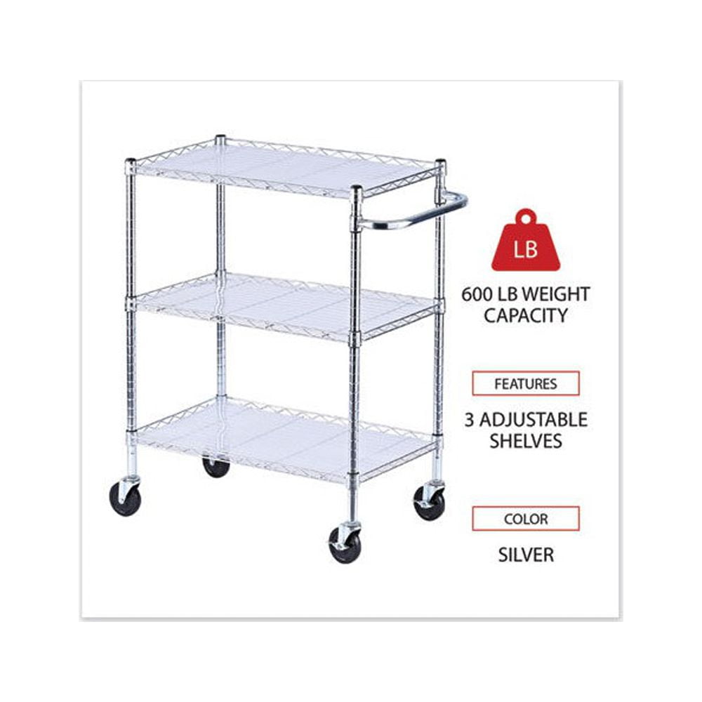 Alera 3-Shelf Wire Cart with Liners, 34.5w x 18d x 40h, Silver, 600-lb Capacity -ALESW333018SR