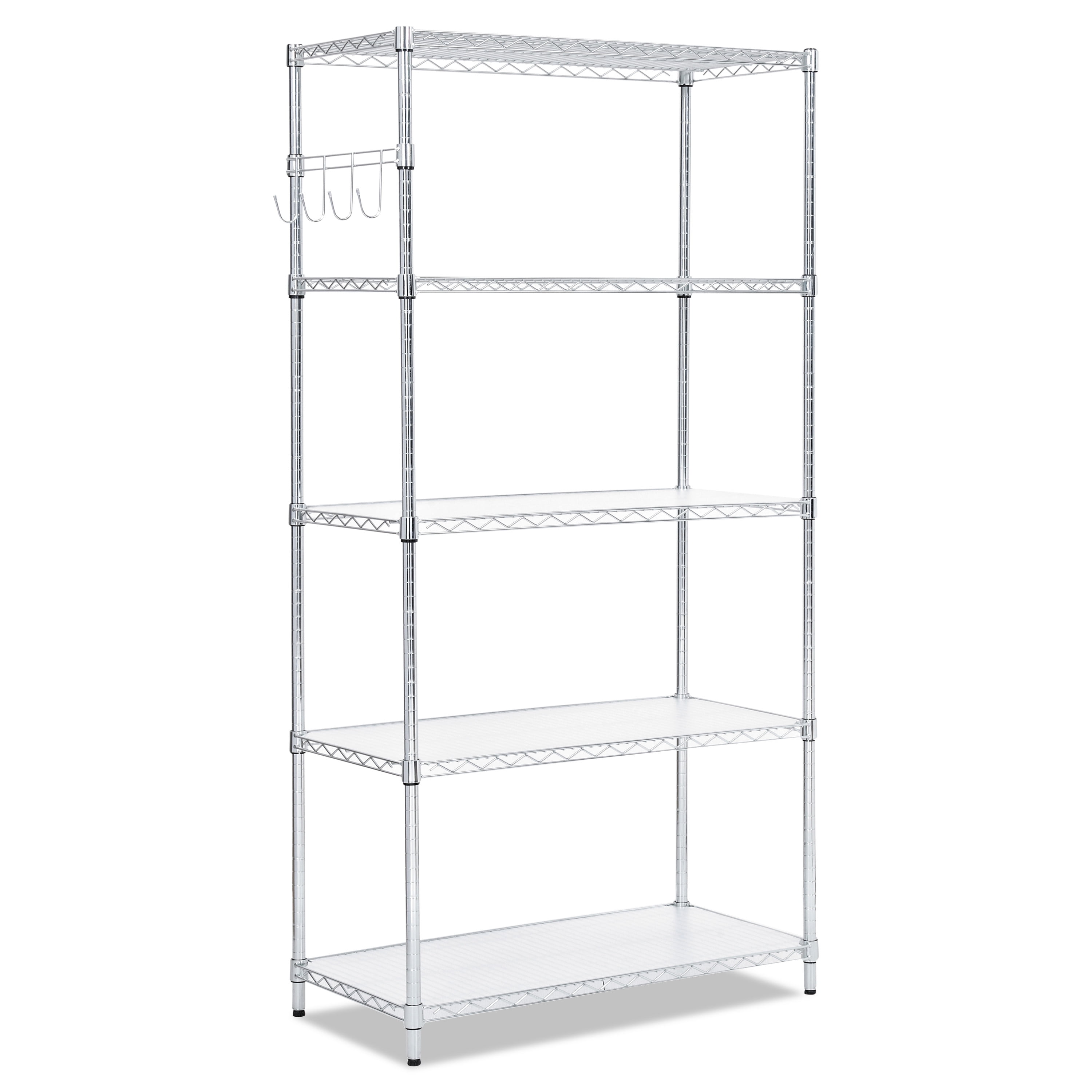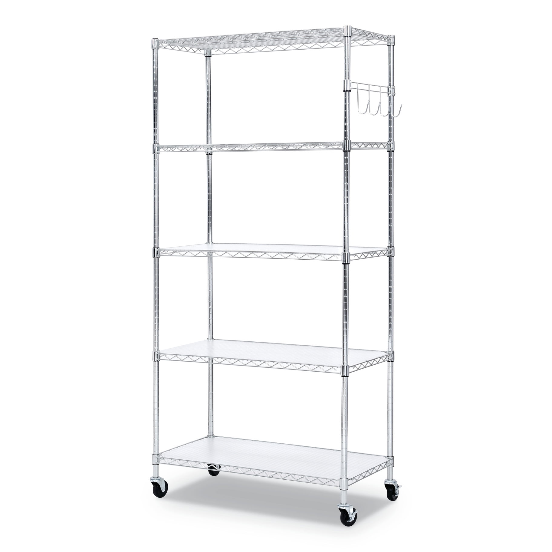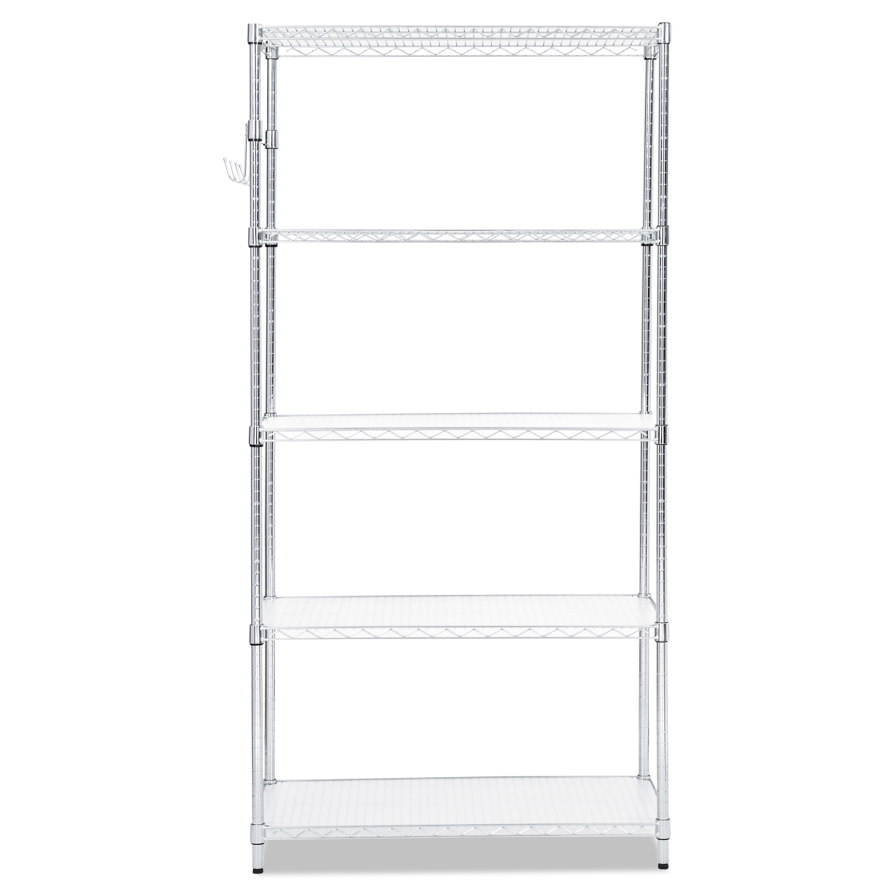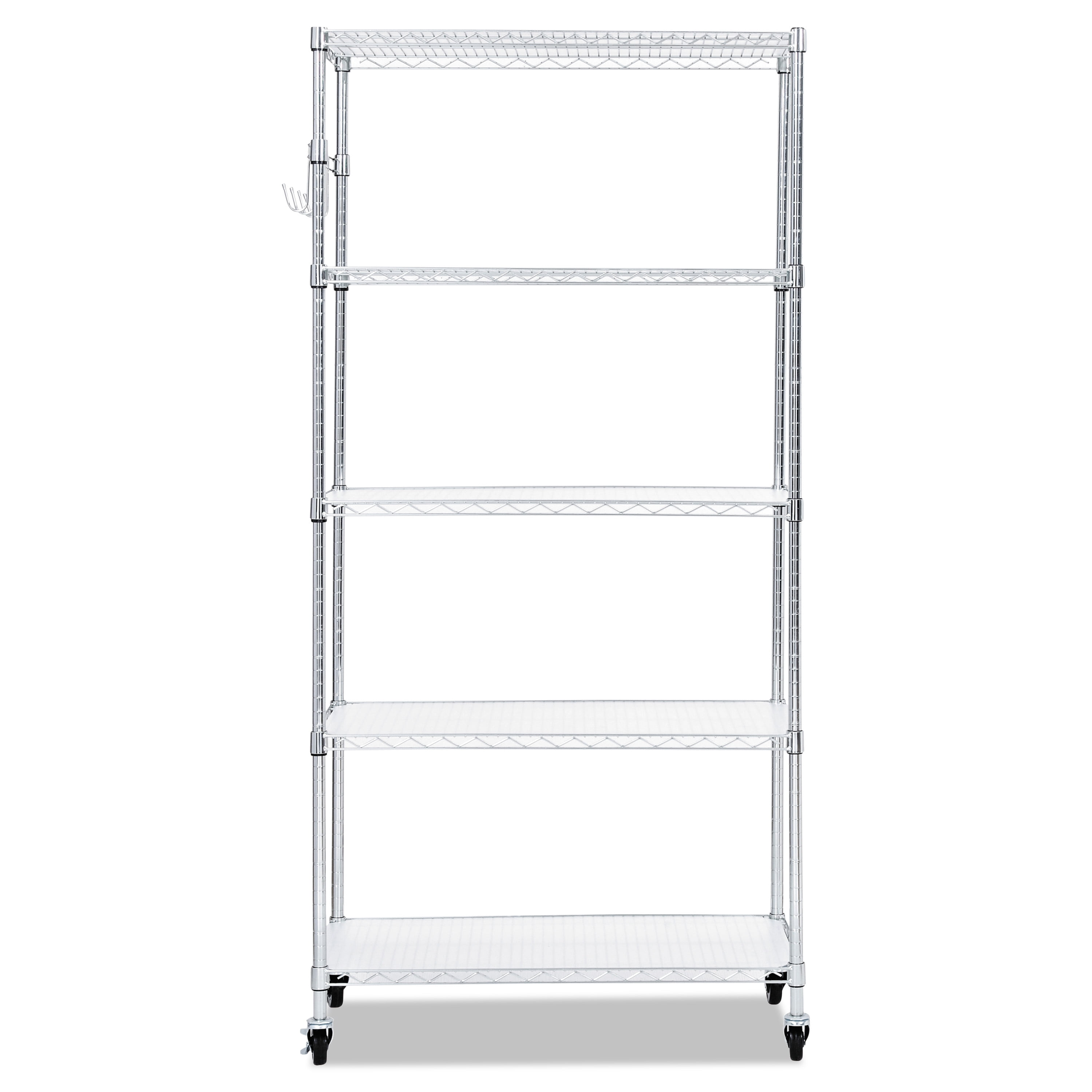 Alera 5-Shelf Wire Shelving Kit with Casters and Shelf Liners, 36w x 18d x 72h, Silver