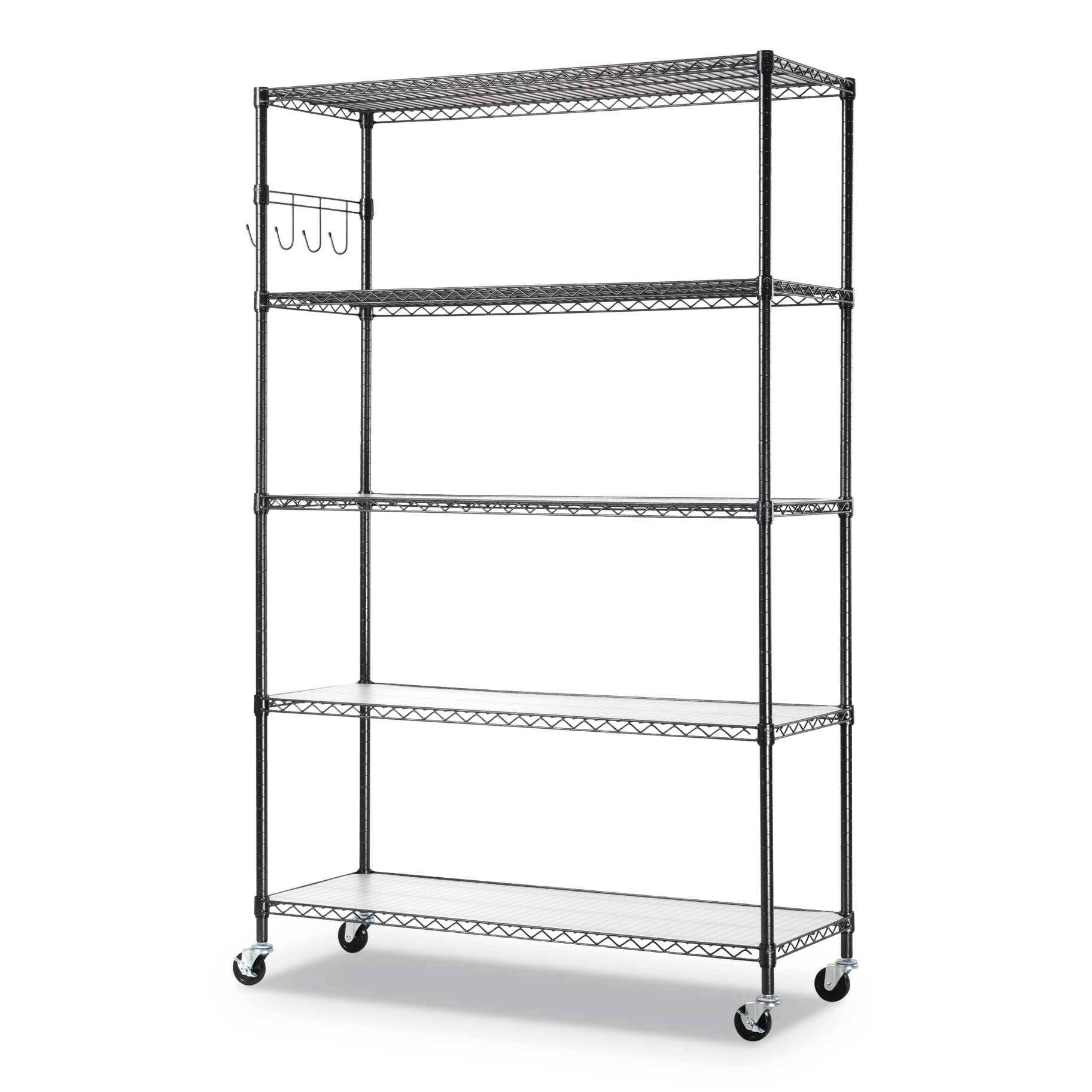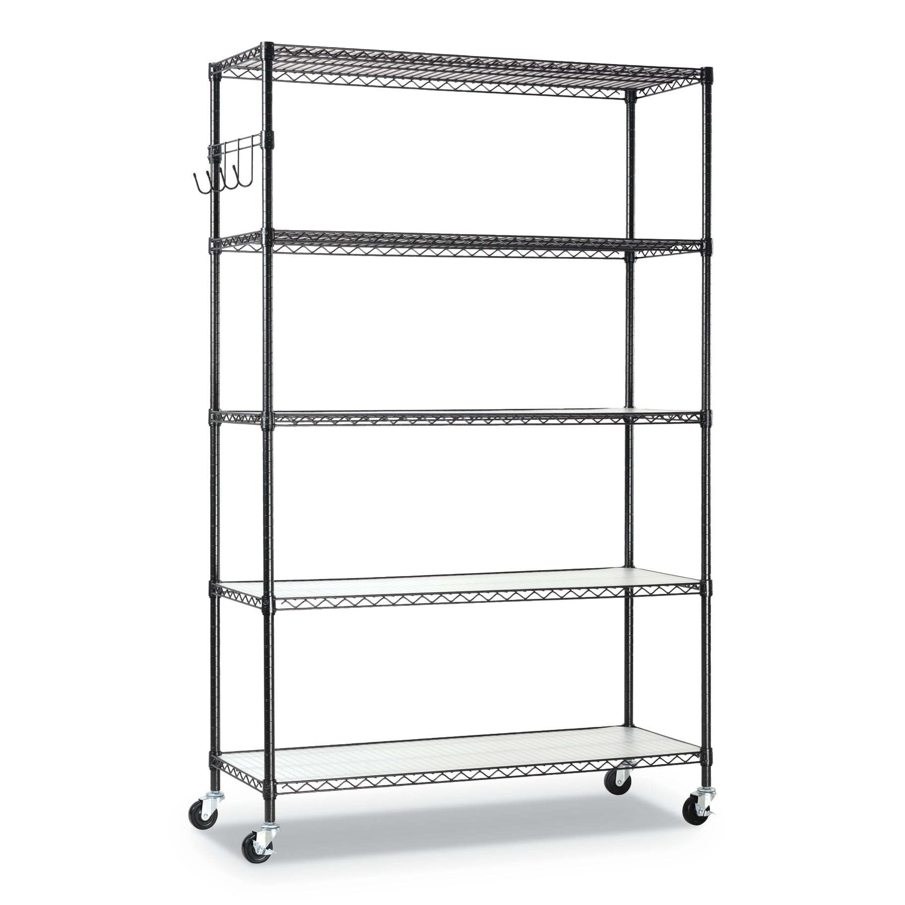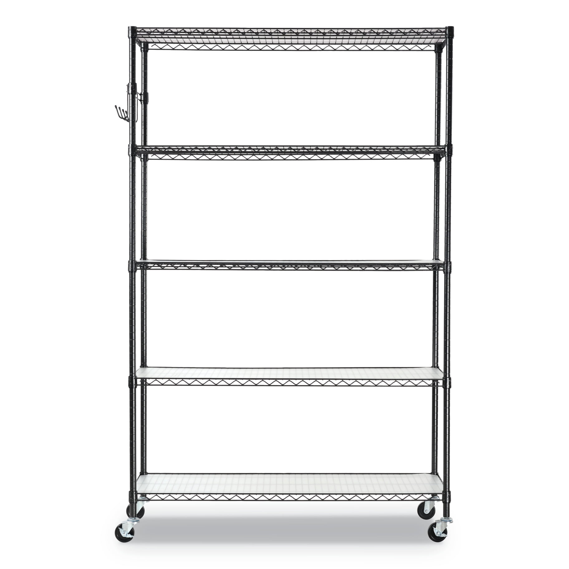 Alera 5-Shelf Wire Shelving Kit with Casters and Shelf Liners, 48w x 18d x 72h, Black Anthracite