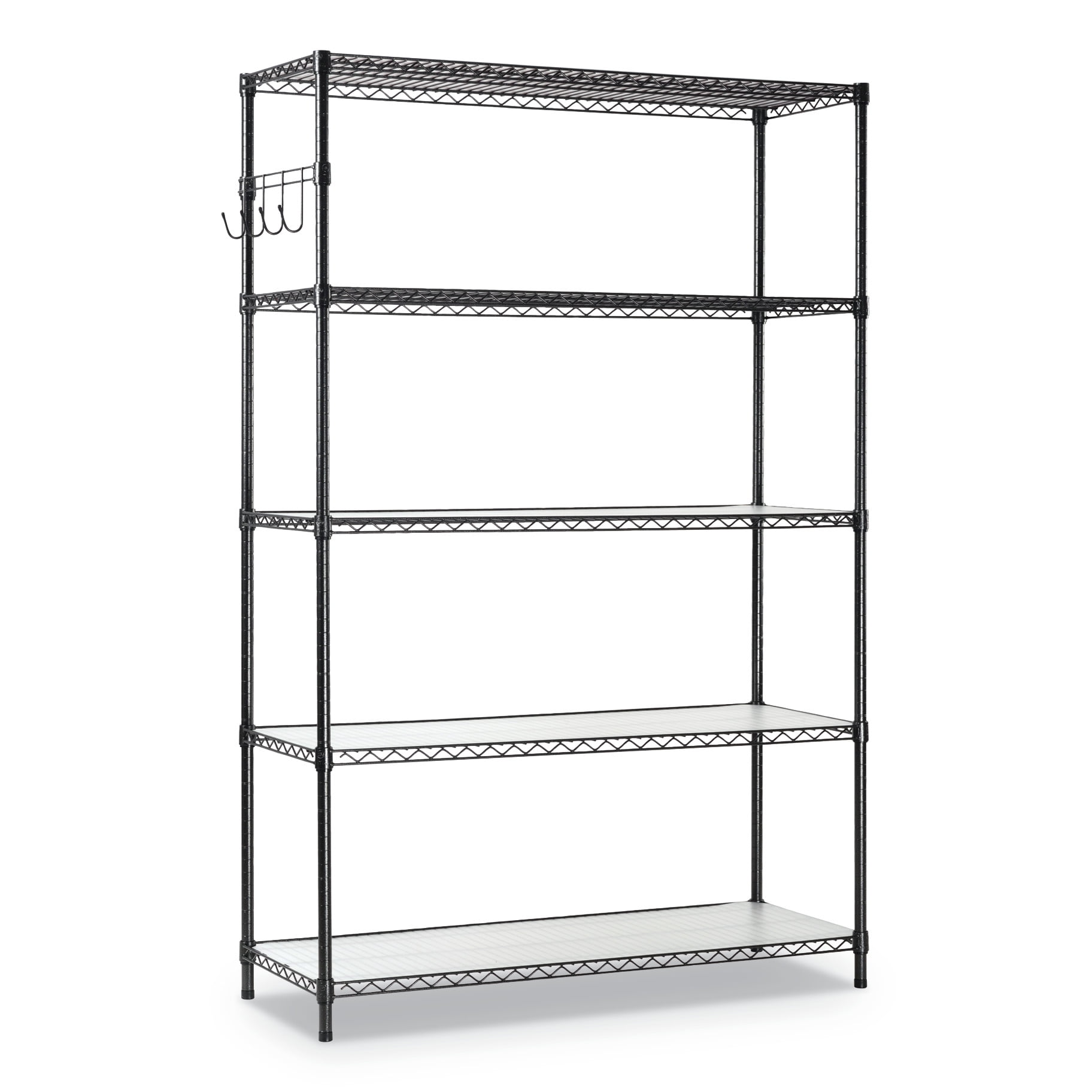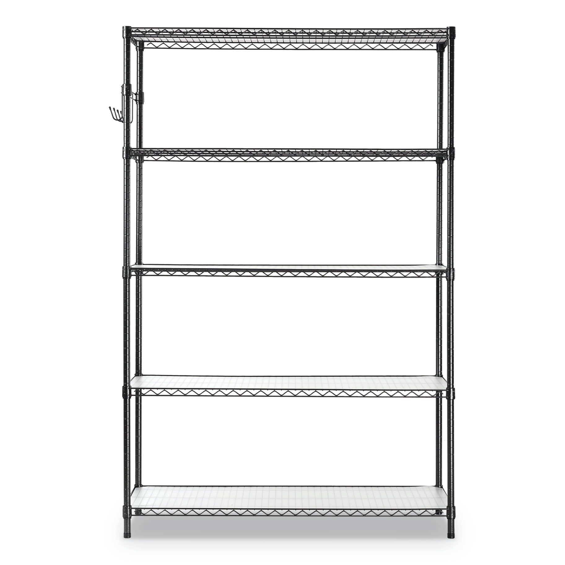 Ideal storage solution for commercial use. Alera’s snap-together design assembles in minutes. Strong welded wire construction provides exceptional strength and stability. Open design allows air circulation and reduces dust build-up. Includes five shelves, posts, shelf clips, shelf liners, casters, hooks and leveling glides (if used without casters). Up to 600 lbs per shelf (evenly distributed) when used without casters. Casters (two locking) provide mobility and can be omitted to increase weight capacity of unit. Capacity (Weight): 3,000 lbs; Color: Black Anthracite; Color Family: Black; Material(s): Steel; Overall Depth: 18″; Overall Height: 72″; Overall Width: 48″; Shelf Capacity (Weight): 600 lbs; Shelf Count: 5; Shelf Depth: 18″; Shelf Thickness: 1″ Compliance Standards: Meets or Exceeds ANSI/BIFMA Standards. Warranty: Manufacturer’s limited five-year warranty. Post-Consumer Recycled Content Percent: 0%. Pre-Consumer Recycled Content Percent: 0%.