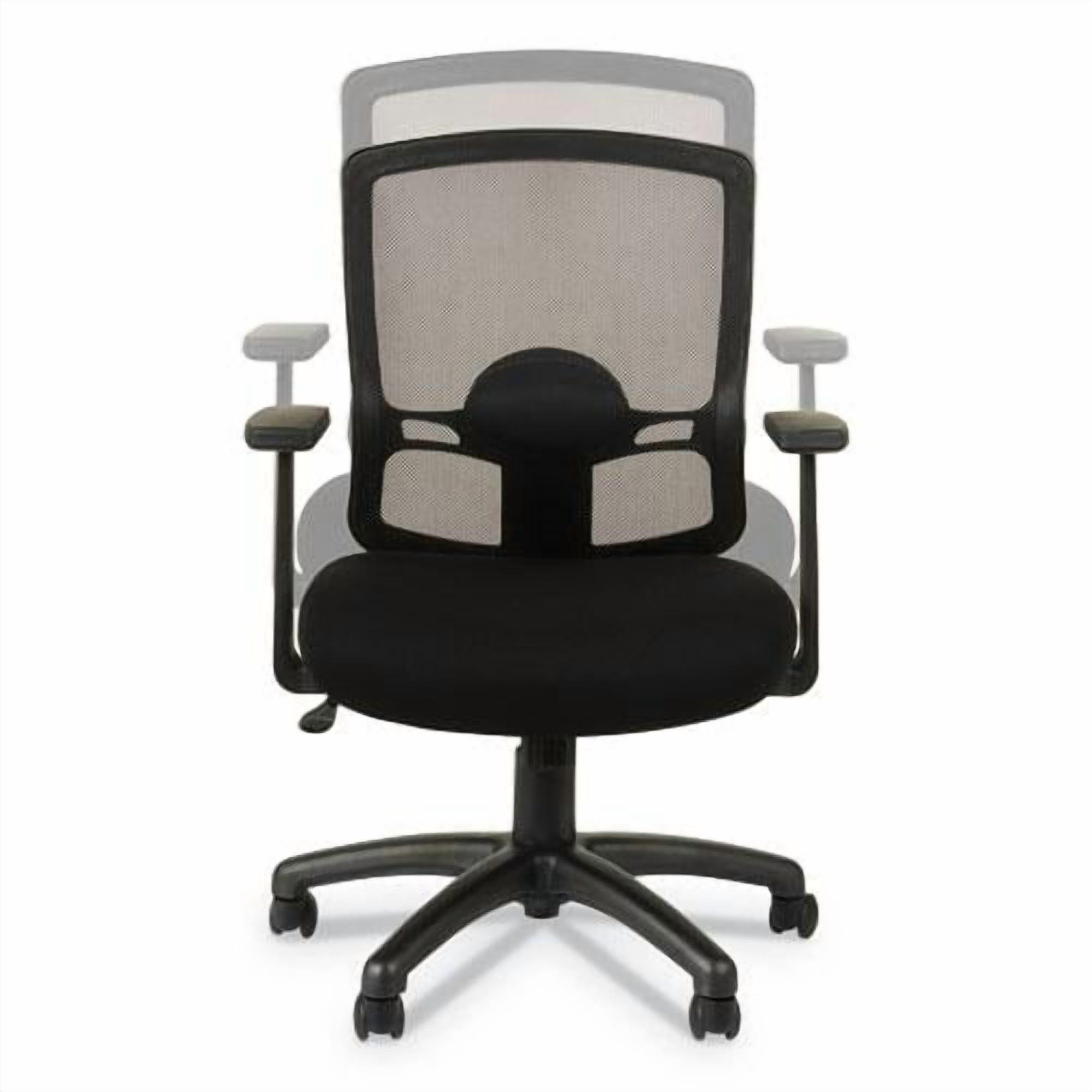 Breathable mesh back with cushioned mesh fabric seat. Adjustable lumbar support. Five-star base with casters for easy mobility. Color Black