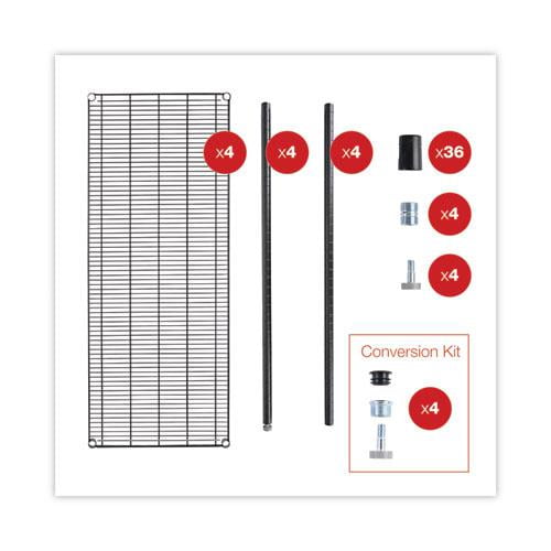 Alera ALESW206024BA 60 in. x 24 in. x 72 in. 4-Shelf All-Purpose Wire Shelving Starter Kit – Black Anthracite Plus