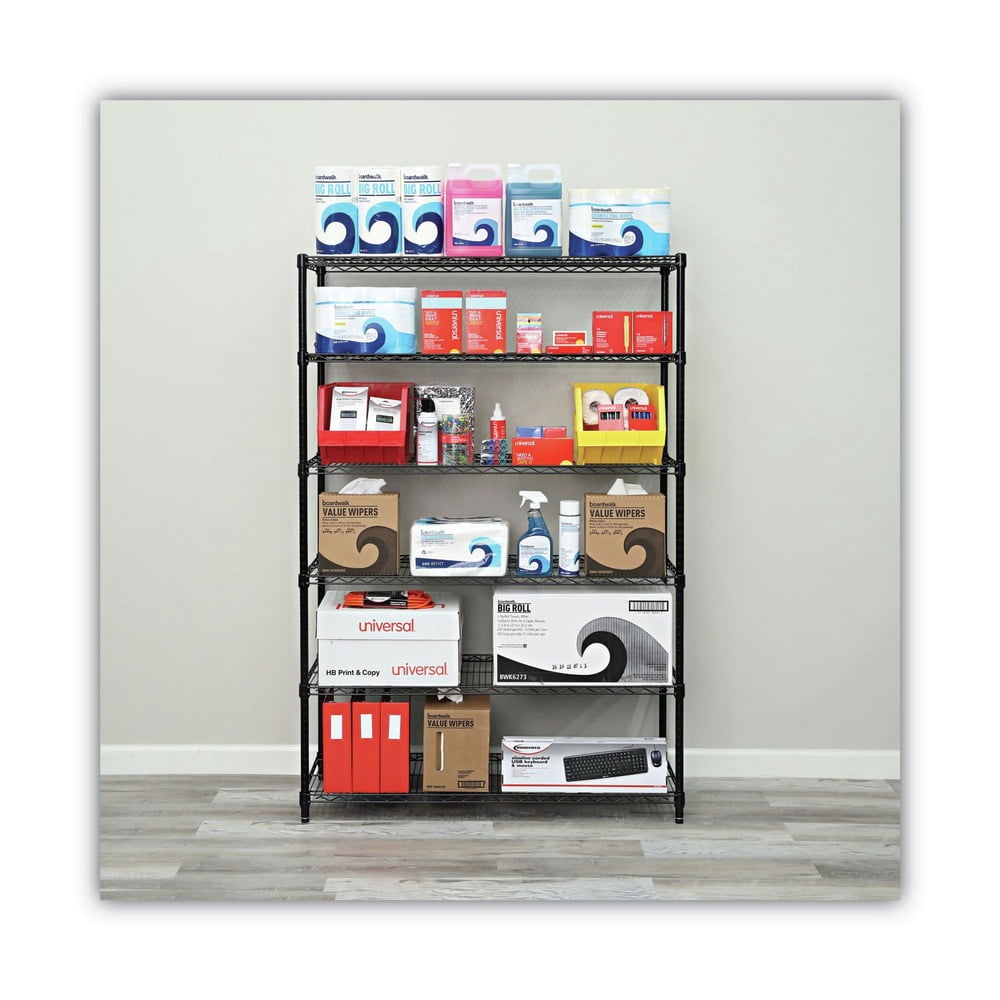 Ideal storage solution for all your medium-duty commercial storage requirements. • Snap-together design assembles in minutes. • Strong welded wire construction provides exceptional strength and stability. • Open design allows air circulation and reduces dust build-up. • Up to 600 lbs. per shelf (evenly distributed). • Sold as 1 Each.
