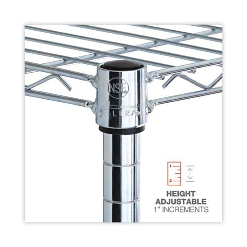 Residential Wire Shelving, Five-Shelf, 36w x 14d x 72h, Silver An economical storage solution for light duty storage, retail display, and residential applications. Simple, snap-together design assembles without tools in minutes. Built with a strong, welded wire construction that provides exceptional strength, durability, and stability. The open design allows air circulation and reduces dust build-up. Holds up to 250 lbs. of evenly distributed weight per shelf. Simple, clean design allows the focus to be what’s on the shelves. An economical storage solution for light duty applications. Snap-together design assembles in minutes. Strong welded wire construction provides exceptional strength and stability. Open design allows air circulation and reduces dust build-up. Holds up to 250 lbs. per shelf (evenly distributed). – Color: Silver – Disclaimer Statement: Use of casters (optional) may reduce total weight capacity. – Global Product Type: Multiuse Shelving, Open – Material: Steel – Number of Shelves: 5 – Overall Depth: 14″ – Overall Height: 72″ – Overall Width: 36″ – Series Name: Alera® Residential Wire Shelving – Shelf Capacity (Weight): 250 lbs – Shelf Depth: 14″ – Shelf Thickness: 1″ – Compliance Standards: Meets or Exceeds ANSI/BIFMA Standards – Color Family: Silver – Maximum Weight Capacity: 1,250 lbs – Package Includes: (5) Shelves, (4) Posts, Leveling Glides, Shelf Clips – Product Biodegradability in Days: 0