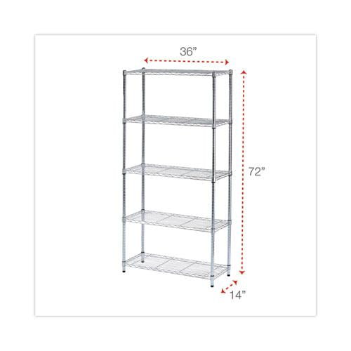 Alera Residential Wire Shelving, Five-Shelf, 36w x 14d x 72h, Silver