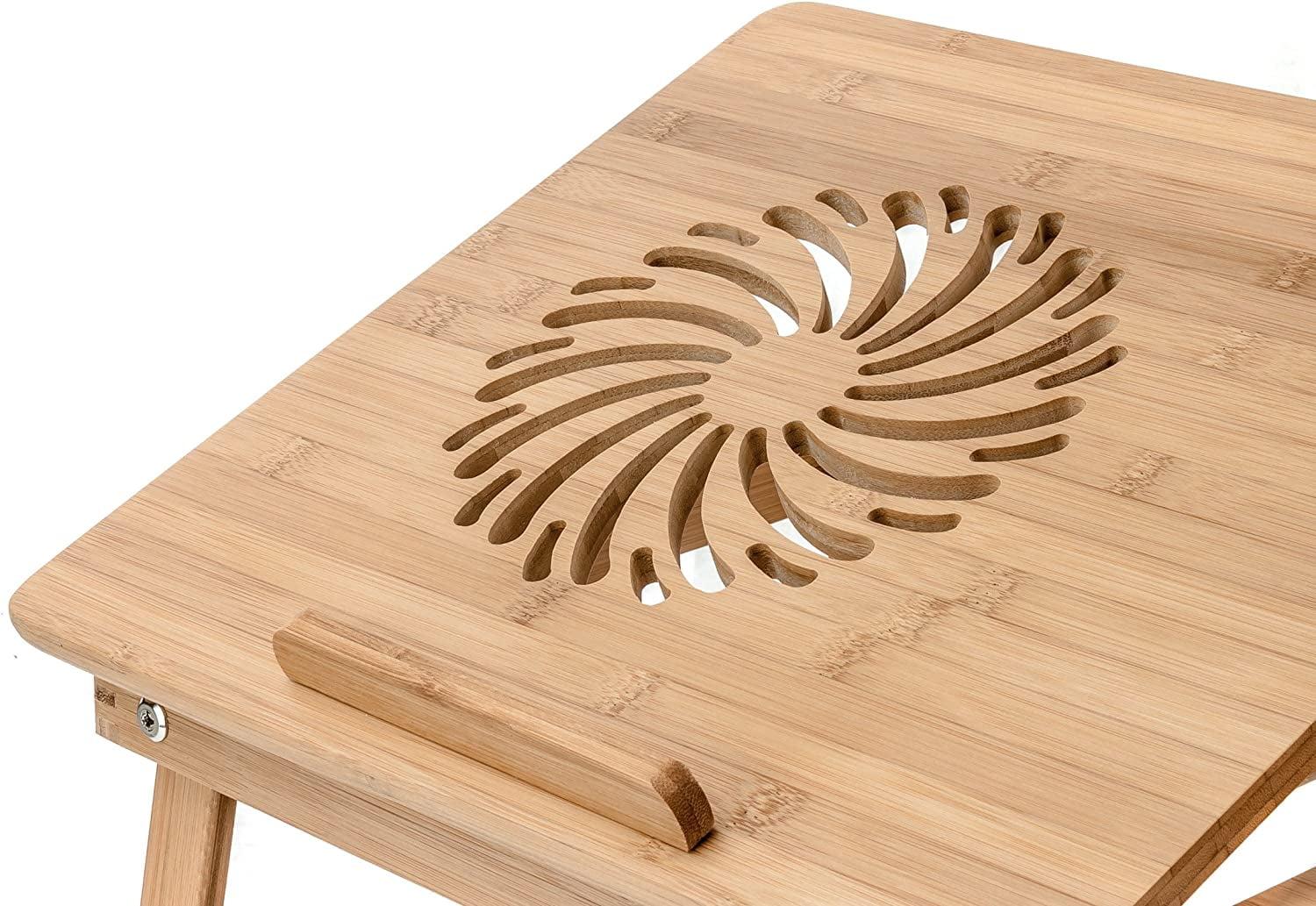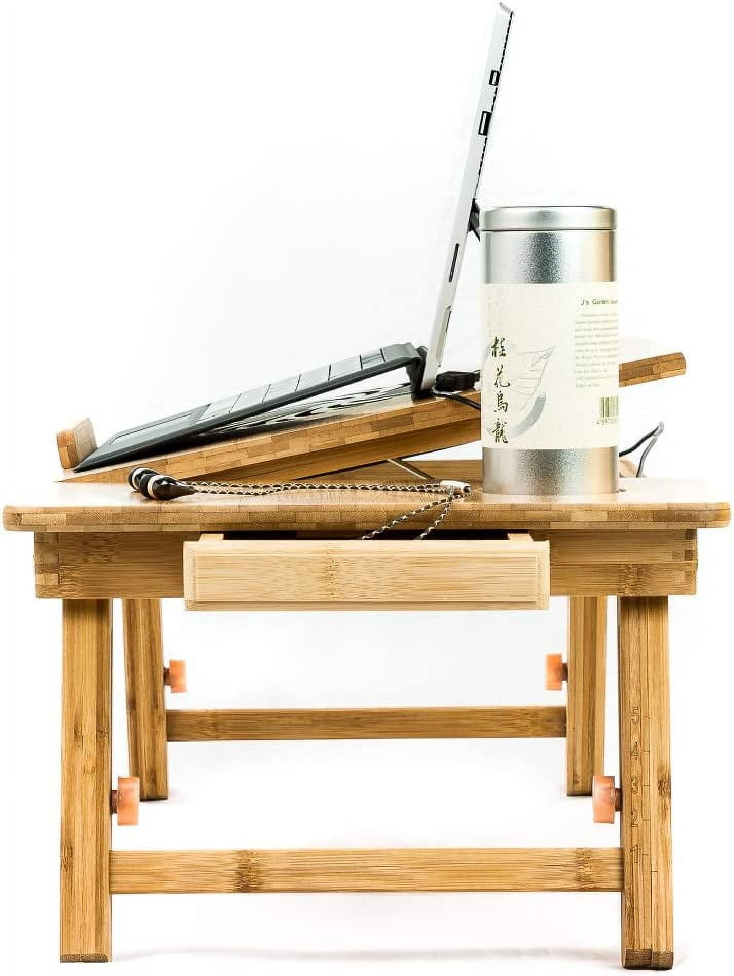 VERSATILE STAND: Adjustable bamboo tray for laptops, tablets, books, and more VARIOUS LAPTOP COMPATIBILITY: Supports laptops, tablets, or notebooks up to 15 inches ERGONOMIC LAPDESK STAND: Adjustable legs and stand to provide the perfect height and view angle COMPACT TABLE LAPDESK: Legs fold completely underneath the stand for convenient storage ECO-FRIENDLY MATERIAL: Made of bamboo, a sustainable resource with many environmental advantages over wood and other materials. According to the Book of Bamboo published by Sierra Club Books, “…bamboo is equipped to replace in several uses – or indirectly decrease consumption of – three resources our century is finding critically scarce…wood, metal, and oil. Bamboo is a super renewable resource…”