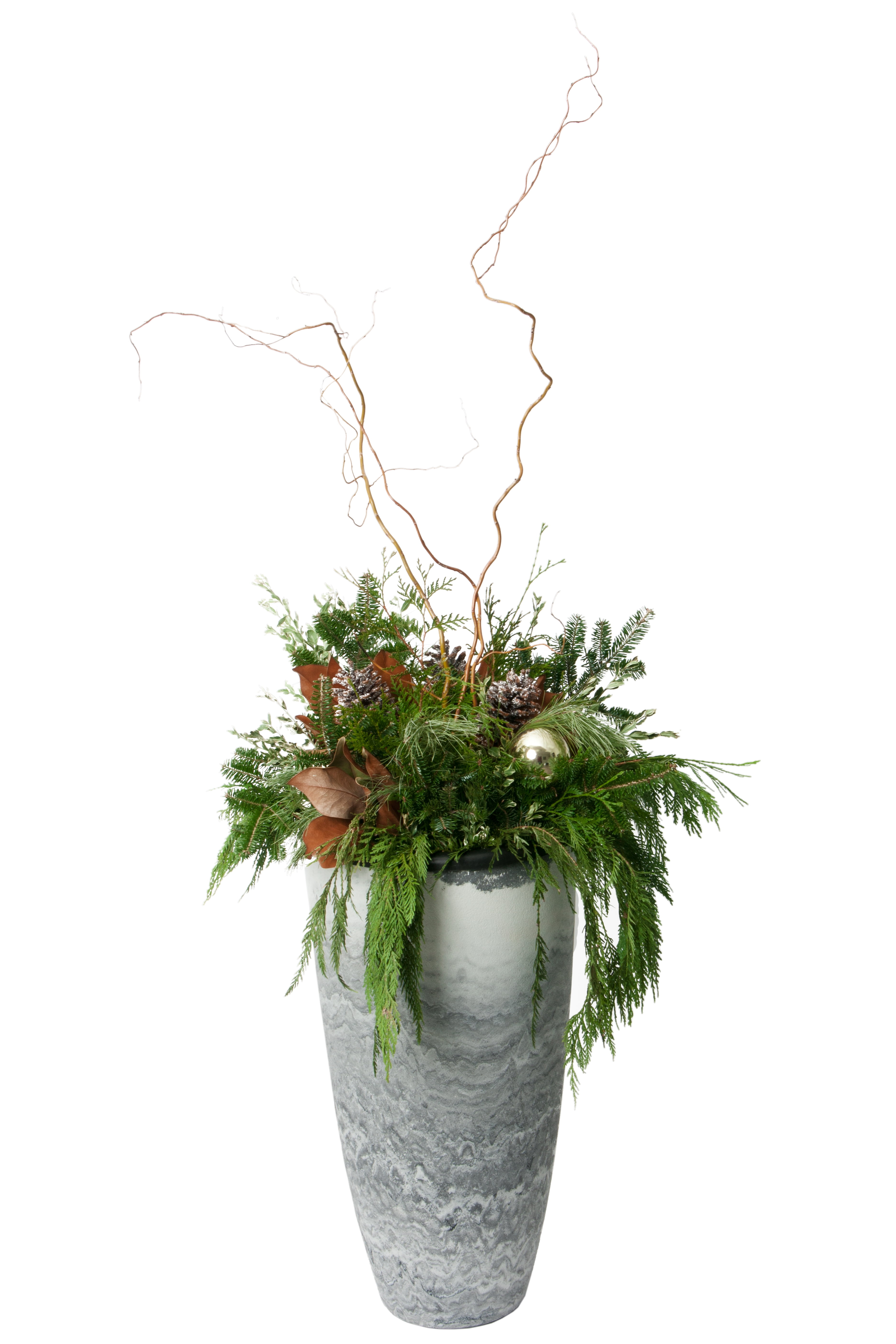 Algreen’s Acerra line of planters feature an innovative composite material that blends stone and recycled resin. This material combination creates a durable flower pot with a decorative texture that’s highlighted by hand finishing. These flower pot planters are sure to compliment your home’s decor. Features Weather and UV resistant Drainage hole and removable plug Robust and durable yet light and easy to move Made from natural and recycled materials Stunning cascading finishSpecifications Color Family: Gray Color/Finish: Marble Material: Plastic Diameter: 14 in. Height: 26.5 Length: 14 Width: 14 Weight: 11 lbs – SKU: AGNP1994