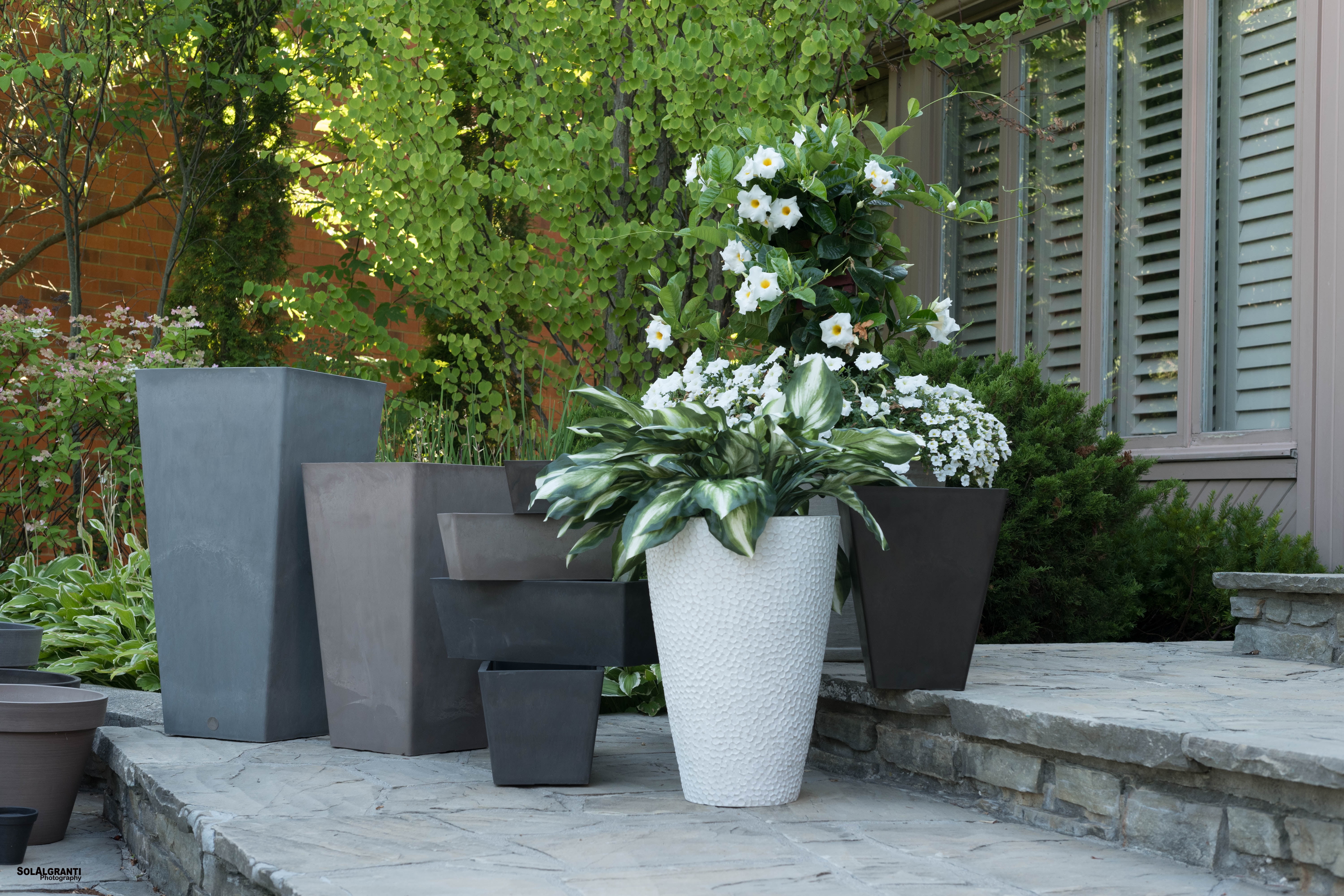 Algreen Valencia Planter, Hammered Texture Planter, 15-In. by 20-In. Height, Weathered White