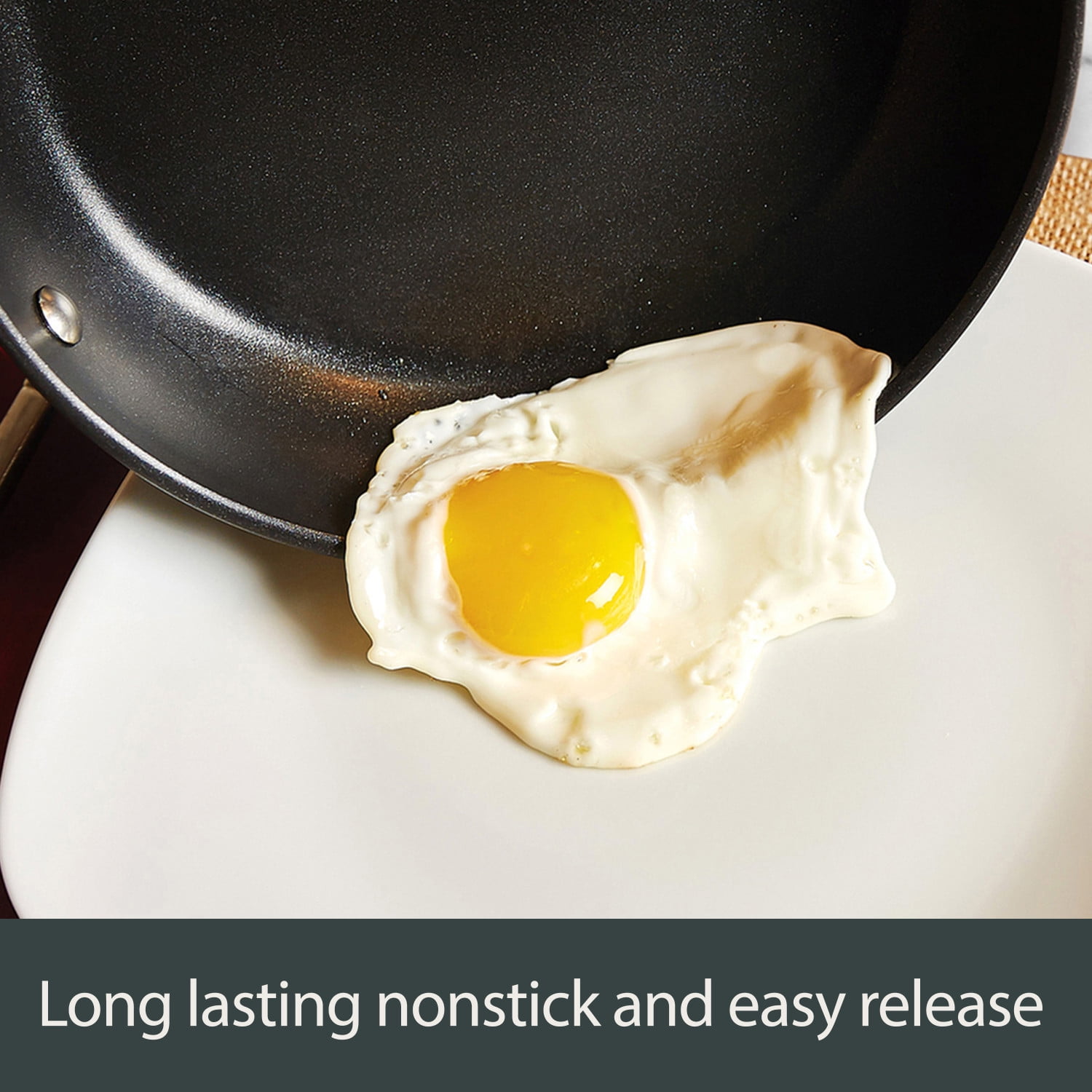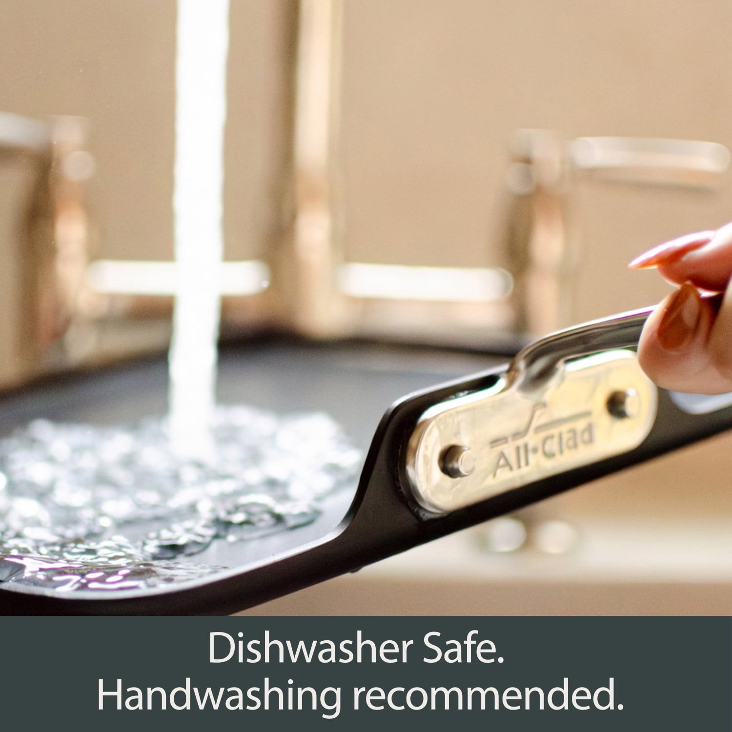 11-inch square grille pan with wide ridged bottom and high sides Hard Anodized aluminum construction for fast, even heating and easy cleanup; Anti-Warp base PFOA-free scratch resistant nonstick coating for healthier cooking with less fat Stainless-steel handles contoured for a comfortable hold and permanently secured with stainless-steel rivets Oven safe to 500 degrees F (without lids); dishwasher-safe, handwash recommended; limited lifetime warranty