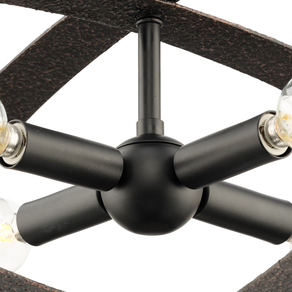 A distinctive foundry texture gives the Allegheny Collection an authentically crafted style. Its artisanal frame is finished in Iron Copper and surrounds a Matte Black light cluster, casting soft illumination throughout the room. This fixture is part of the Progress Lighting Design Series, a lighting collection offering fashionable styles and luxury lighting for the home.