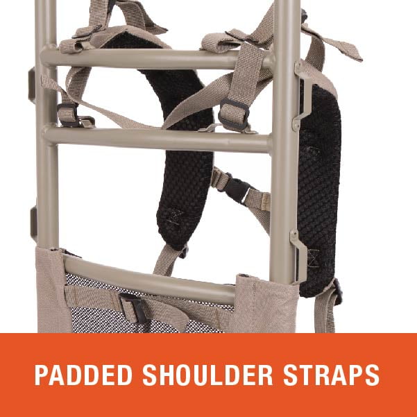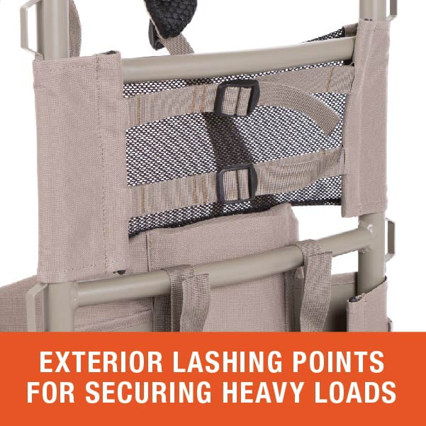 The Rock Canyon External Pack Frame from Allen is a lightweight, yet heavy-duty, sturdy aluminum frame that allows you to pack out your gear or harvest with ease. The frame is adjustable from 33-inches to 36-inches for increased load capacity, the bottom folding shelf gives you extra support when needed but folds flat for easy storage, and the exterior lashing points quickly secure heavy loads. The contoured frame rests naturally on your back, and the dense foam padded waist belt and shoulder straps with cool mesh backing, plus the chest strap, help keep you comfortable. The pack also features a mesh back support panel for added stability. Allen Company Rock Canyon Lightweight External Backpack Frame, Tan, Sport All-Weather, Hunting, Aluminum. Adult Men Large frame for heavy loads.