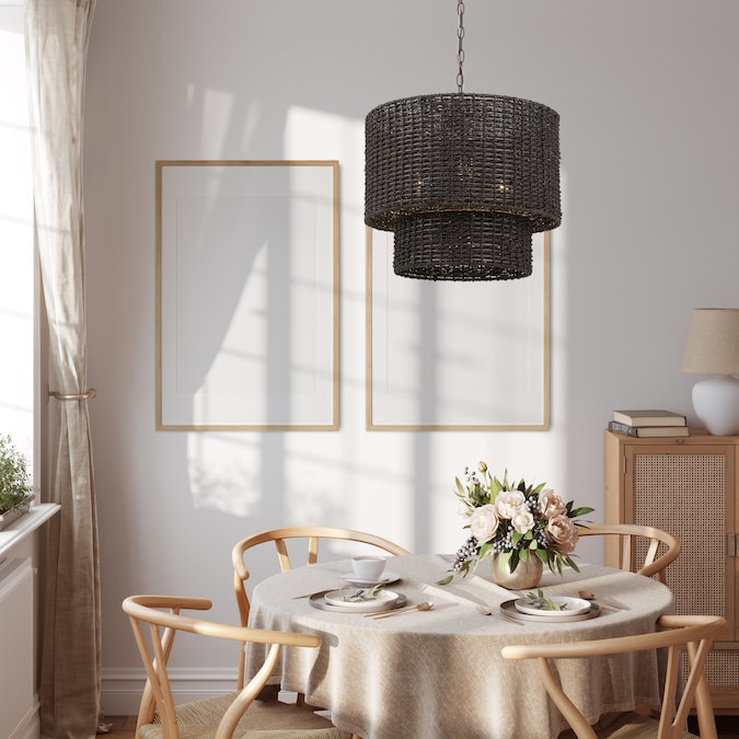 - Natural rattan pendant from the allen + roth ADARA collection offers an on-trend earthy appeal