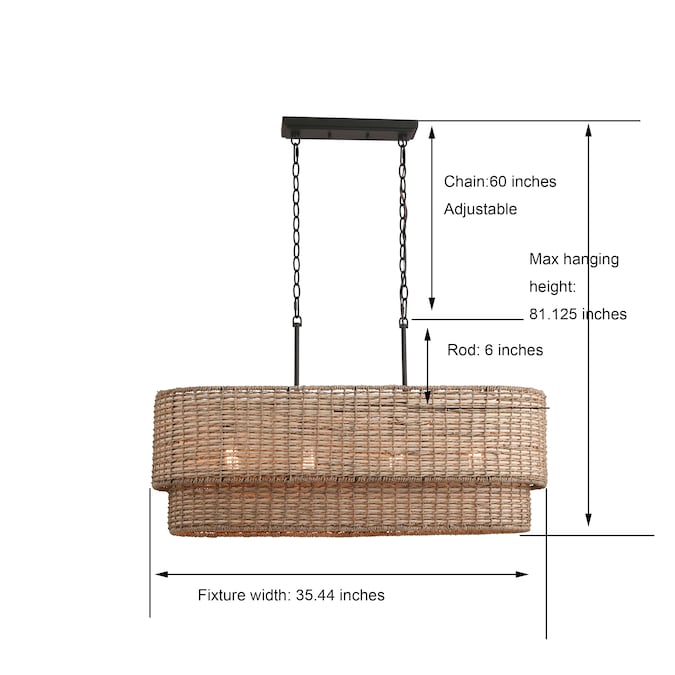 This natural rattan shade pendant from Adara collection, matte black canopy and chain and rods offers a timeless look. Natural shade is very suitable for the farmhouse style. We recommend using this natural fixture in various settings. You can either install it to decorate your living room, bedroom, entryway, kitchen island,or set it as foyer lighting.
