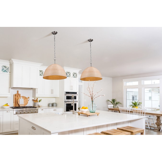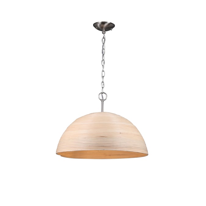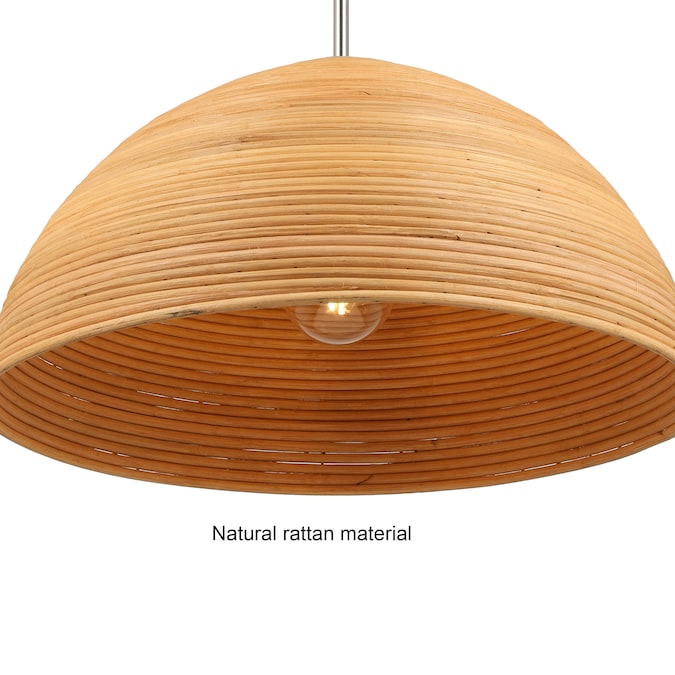 - Brushed nickel finish with natural rattan shade create for elegant way to update your decor