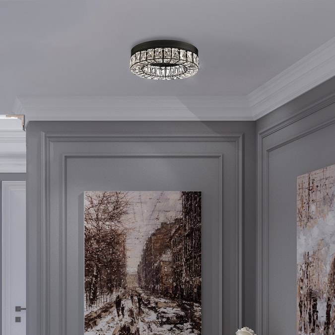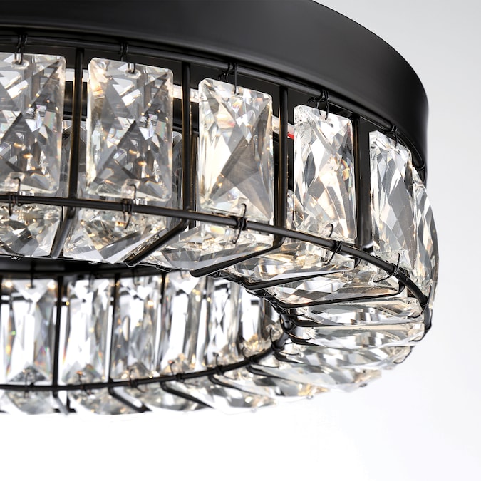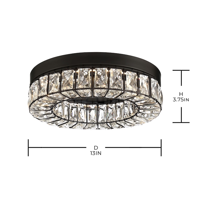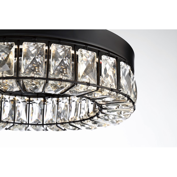 LED light illuminates from a crystal ring that radiates a prismatic glow. Each clear crystal prism fits perfectly within the matte black framework. Add this stylishly glamorous piece to embellish your decor.