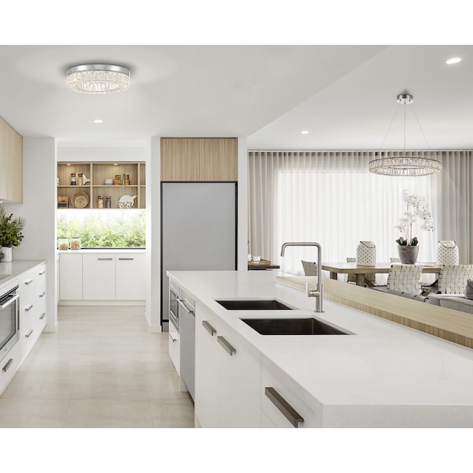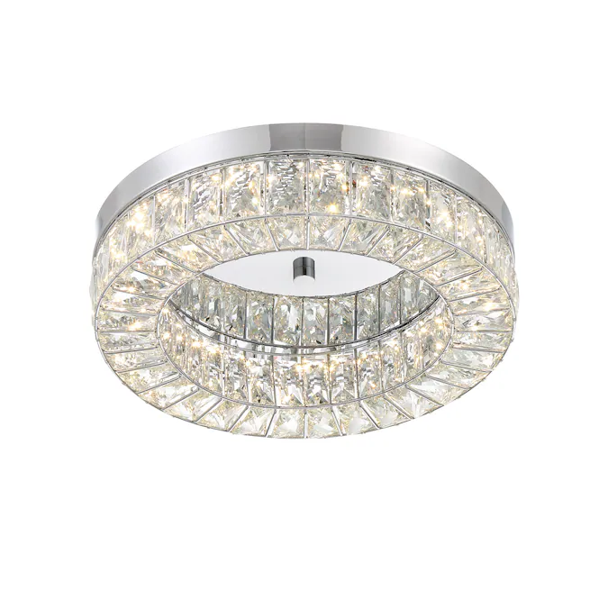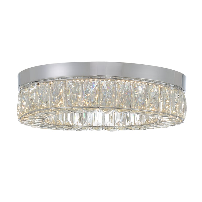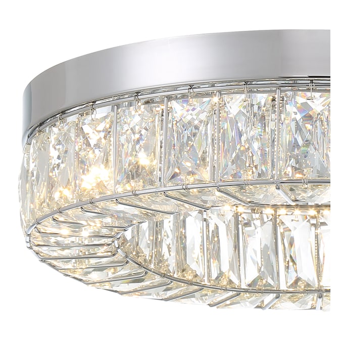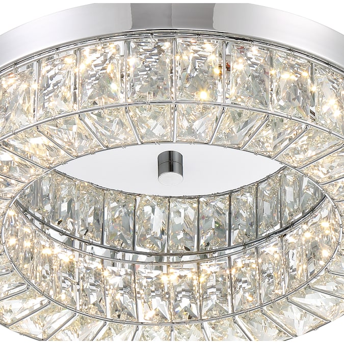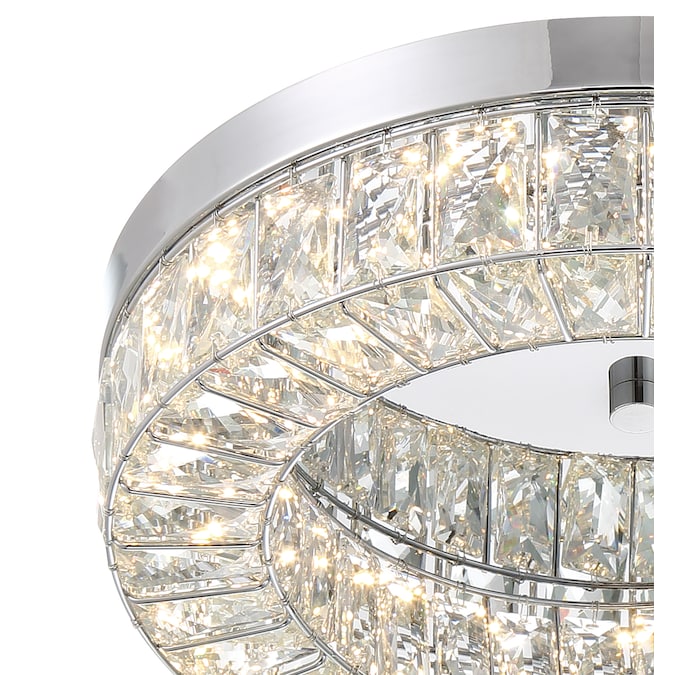 LED light illuminates from a crystal ring that radiates a prismatic glow. Each clear crystal prism fits perfectly within the Chrome framework. Add this stylishly glamorous piece to embellish your decor.