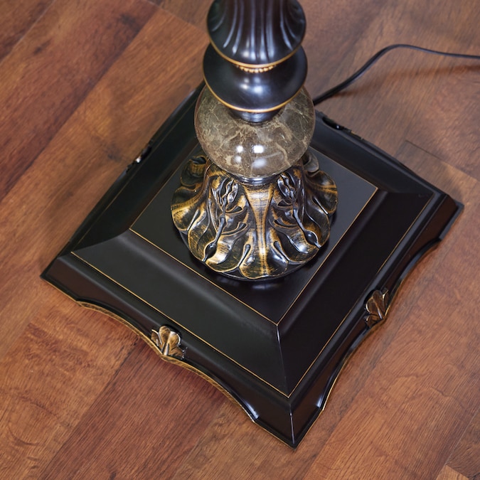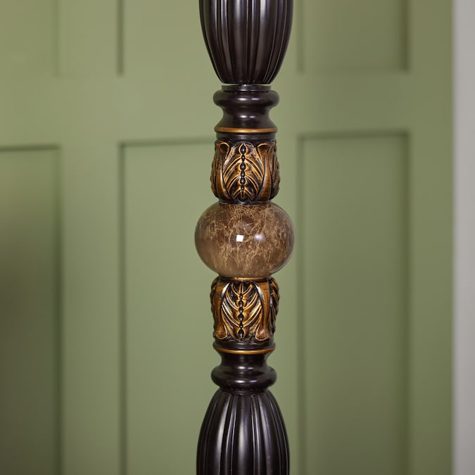 - Bronze torchiere floor lamp features gold highlights and ornate detailing for a beautiful timeless look