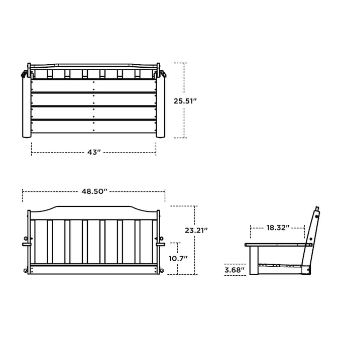 - Overall dimensions measure 48.5-in x 23.25-in x 25.5-in (WxHxD)