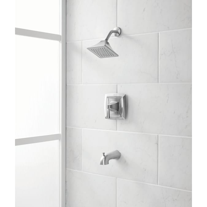 Refresh your shower with the allen + roth Chesler 1-handle Single Function bathtub and shower faucet. The single-handle lever allows you to quickly adjust the volume and temperature to your desired level seamlessly. The bathtub and shower faucet is finished with PVD anti-tarnish technology for durability.