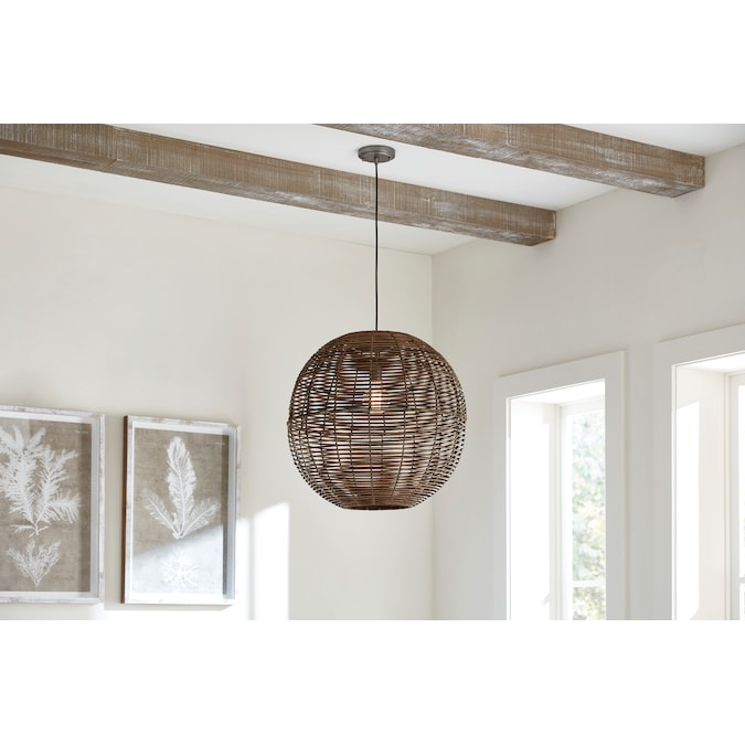 - Dark natural rattan pendant from the allen + roth collection offers an on-trend earthy appeal