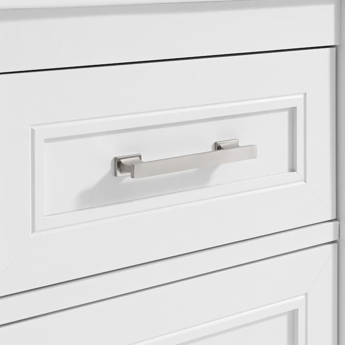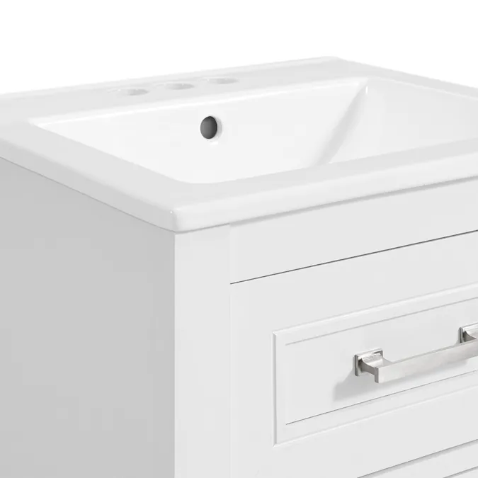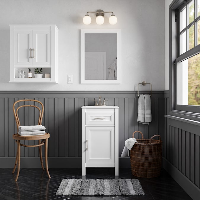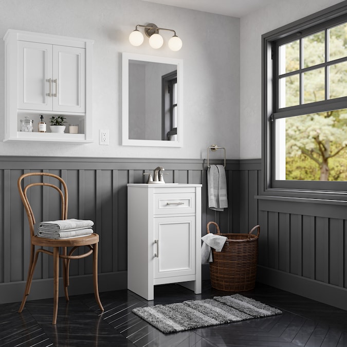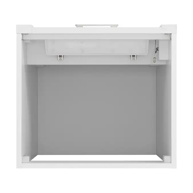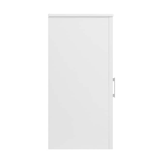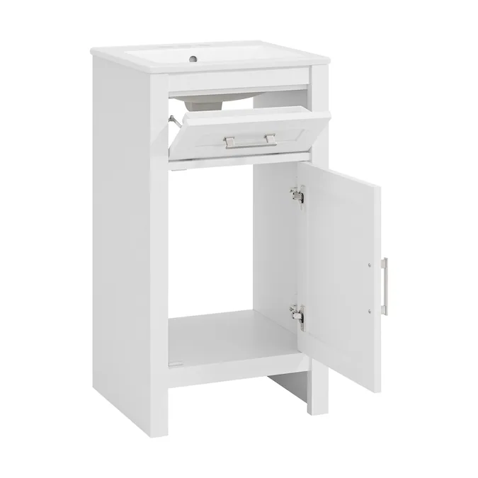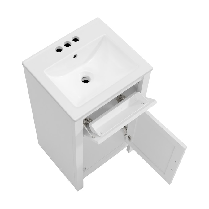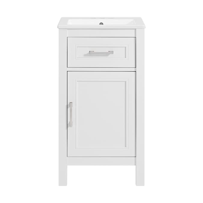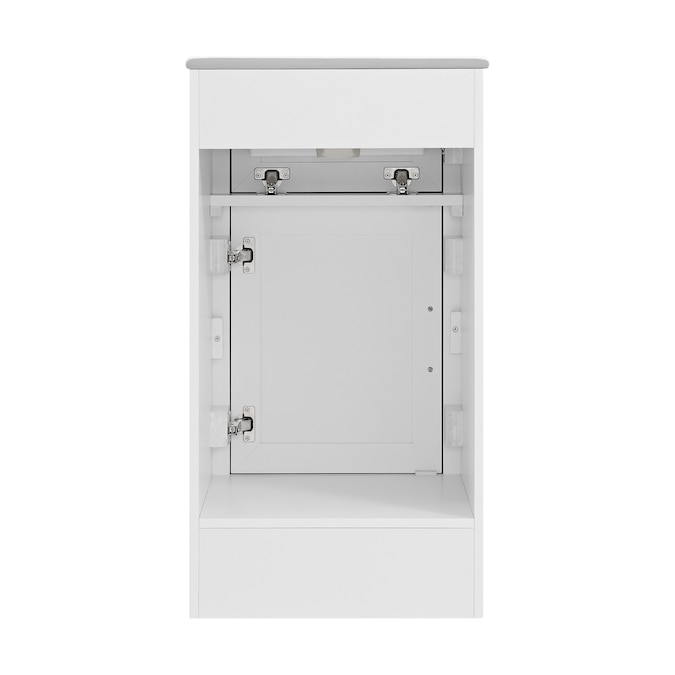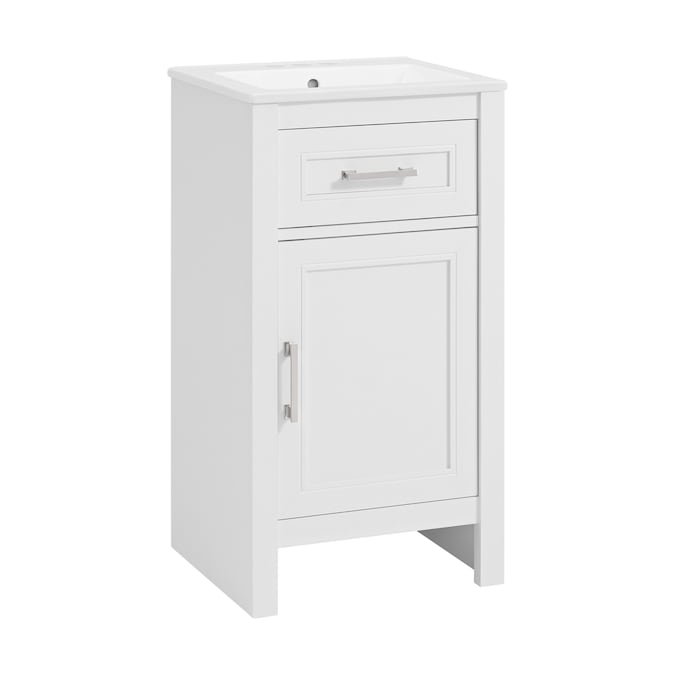 Sophistication and function come together in this small package. This allen + roth vanity features a white gel top with integrated sink. The crisp white laminate finish along with the design details will become a focal point of your bathroom. Featuring ample storage space which included tip out with removable internal tray.