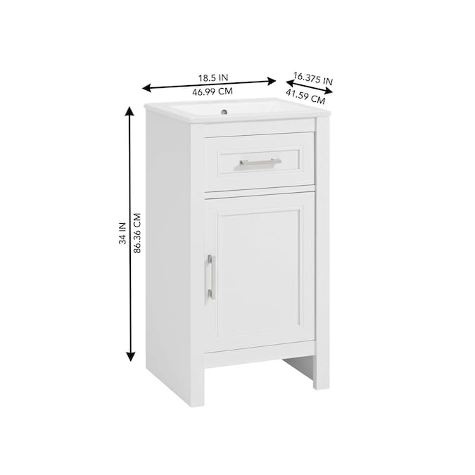 - Bathroom vanity with sink overall dimensions: 18.5-In W x 16.375-In D x 34-In H