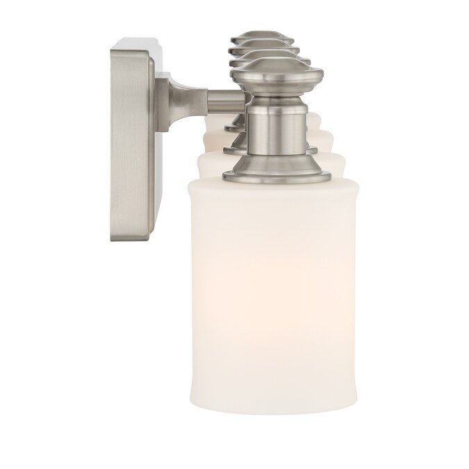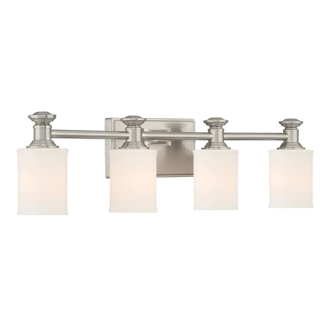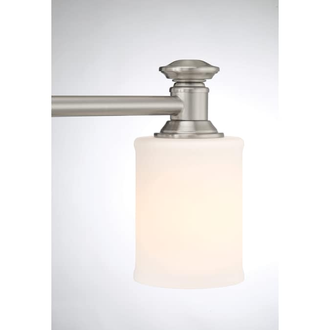A stylish rectangular vanity light adds the perfect touch of charm and appeal to your home. Designed for Allen + Roth, the Gracey Collection makes a great bathroom option for modern and contemporary home designs. Featuring a stunning Brushed Nickel Finish with Etched Opal Glass Shades for a beautiful finishing touch. Truly a work of art and design. The Gracey Collection is another great addition to The Allen + Roth Family