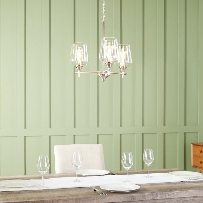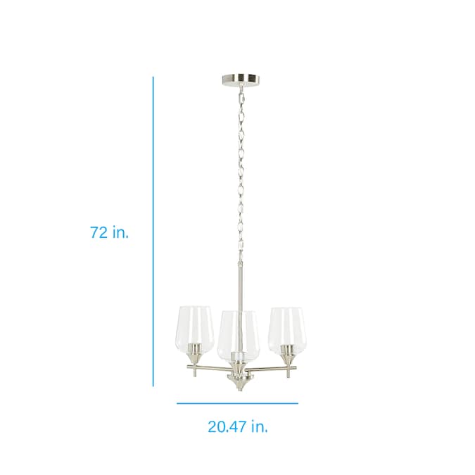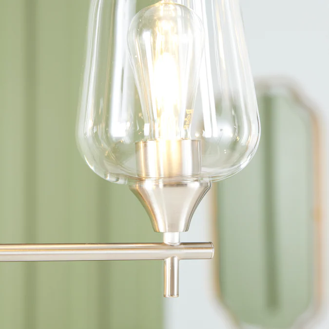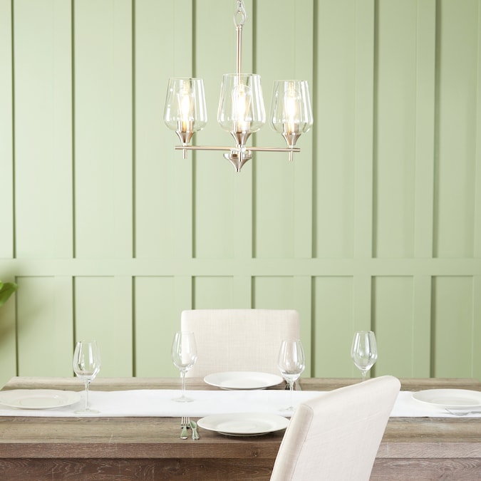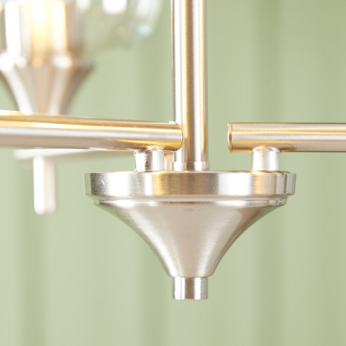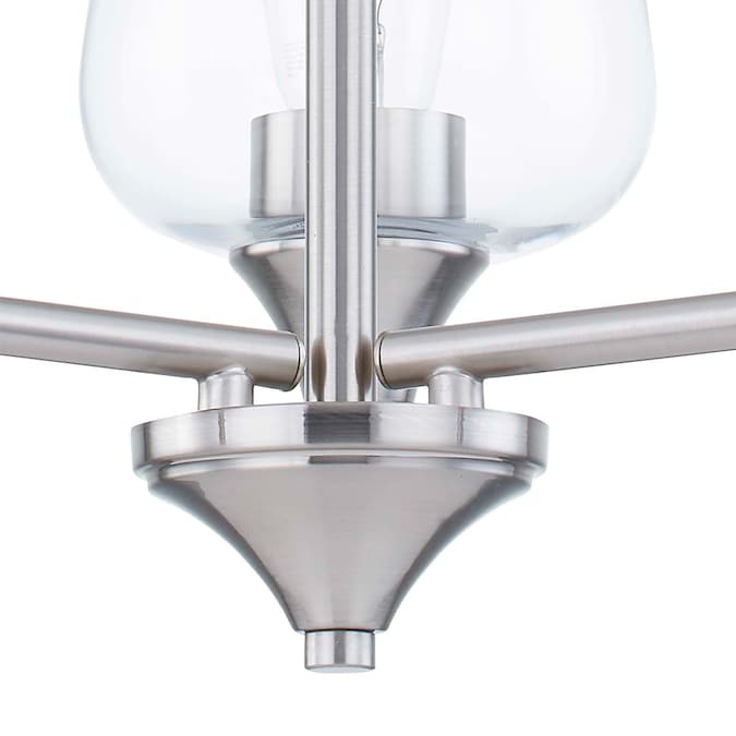 - Mixed materials of brushed nickel finished steel frame and clear glass diffusers